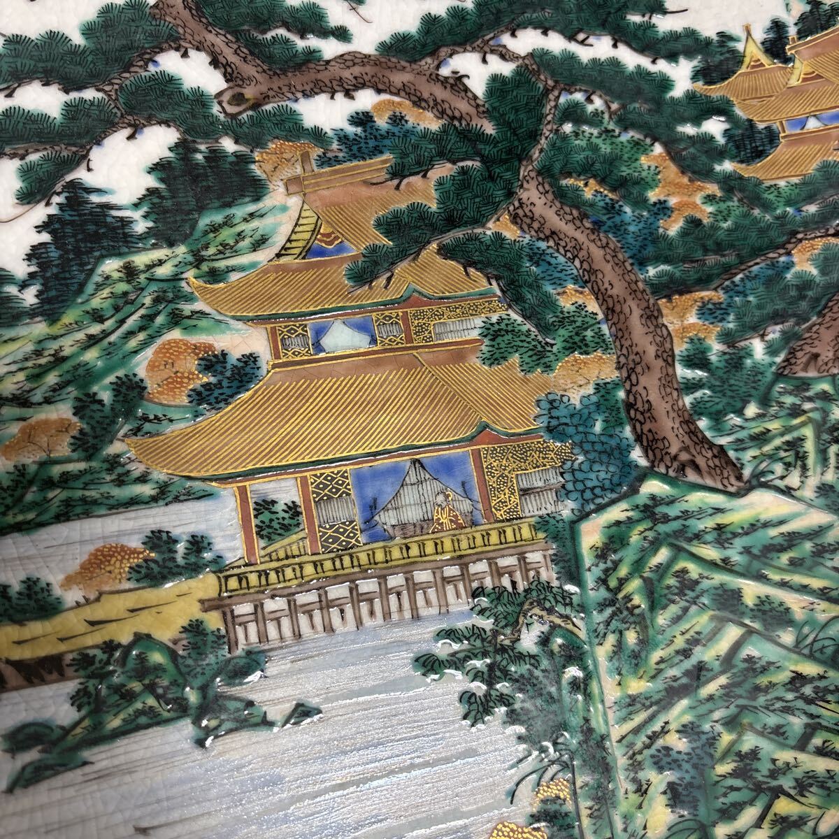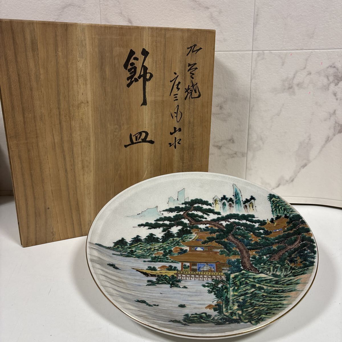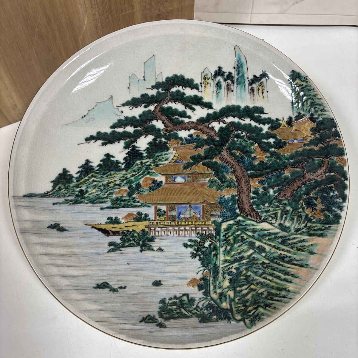 商品名 : 九谷焼 末川泉山 色絵金彩山水図 飾皿 未使用/尺皿 31.5cm 飾り皿