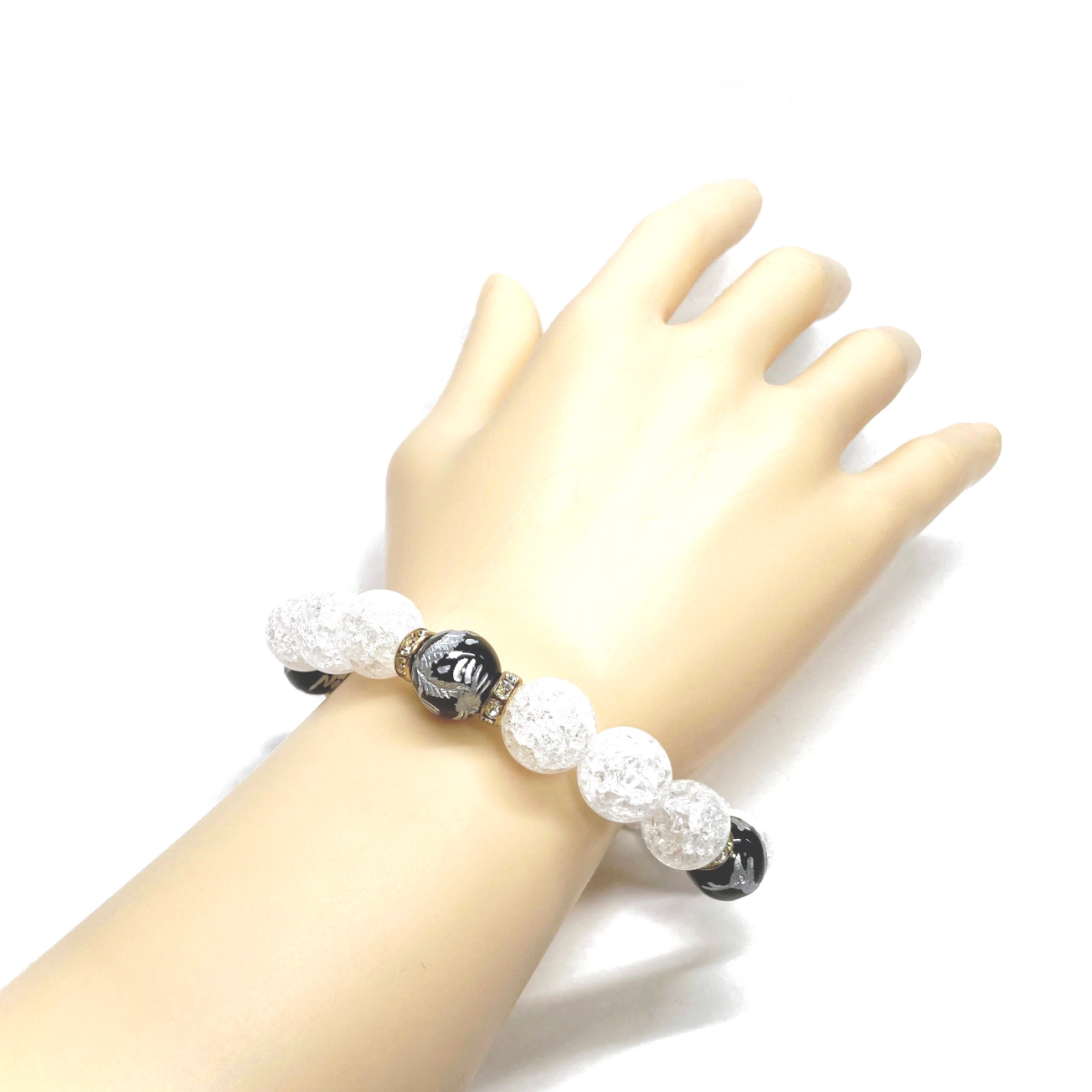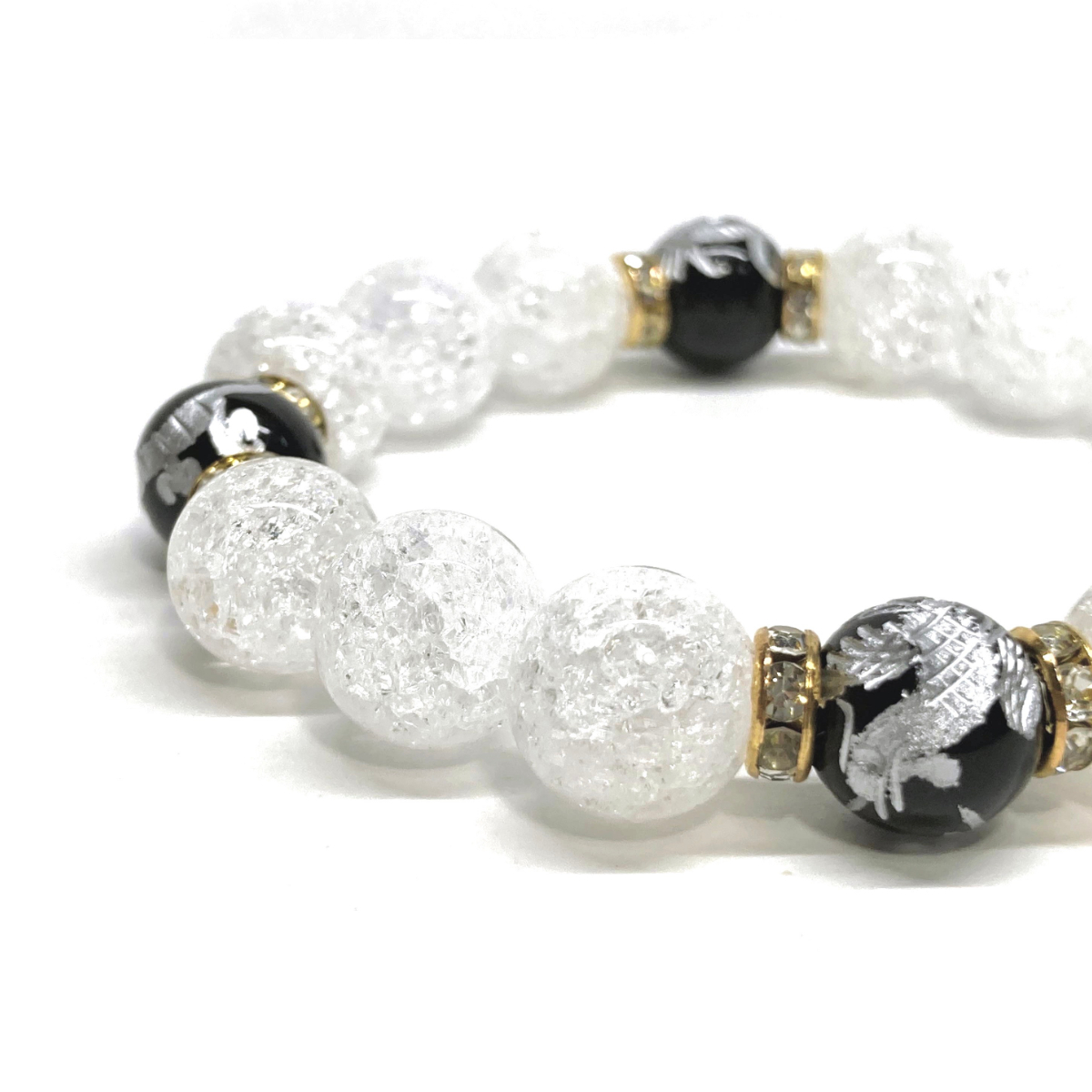 こちらは、四神獣銀彫オニキとクラック水晶を組み合わせたパワーストーンブレスレットです。四神獣は、中国の伝説で4つの方向(東西南北)を守護する神聖な神。四神獣、厄災から身を守り、多くの運気を呼び込むと言われております。石大きさは程よくインパクトのある12mm玉で内周 約17cmです。 数に限りがございますので気になる方はお早めにどうぞ。