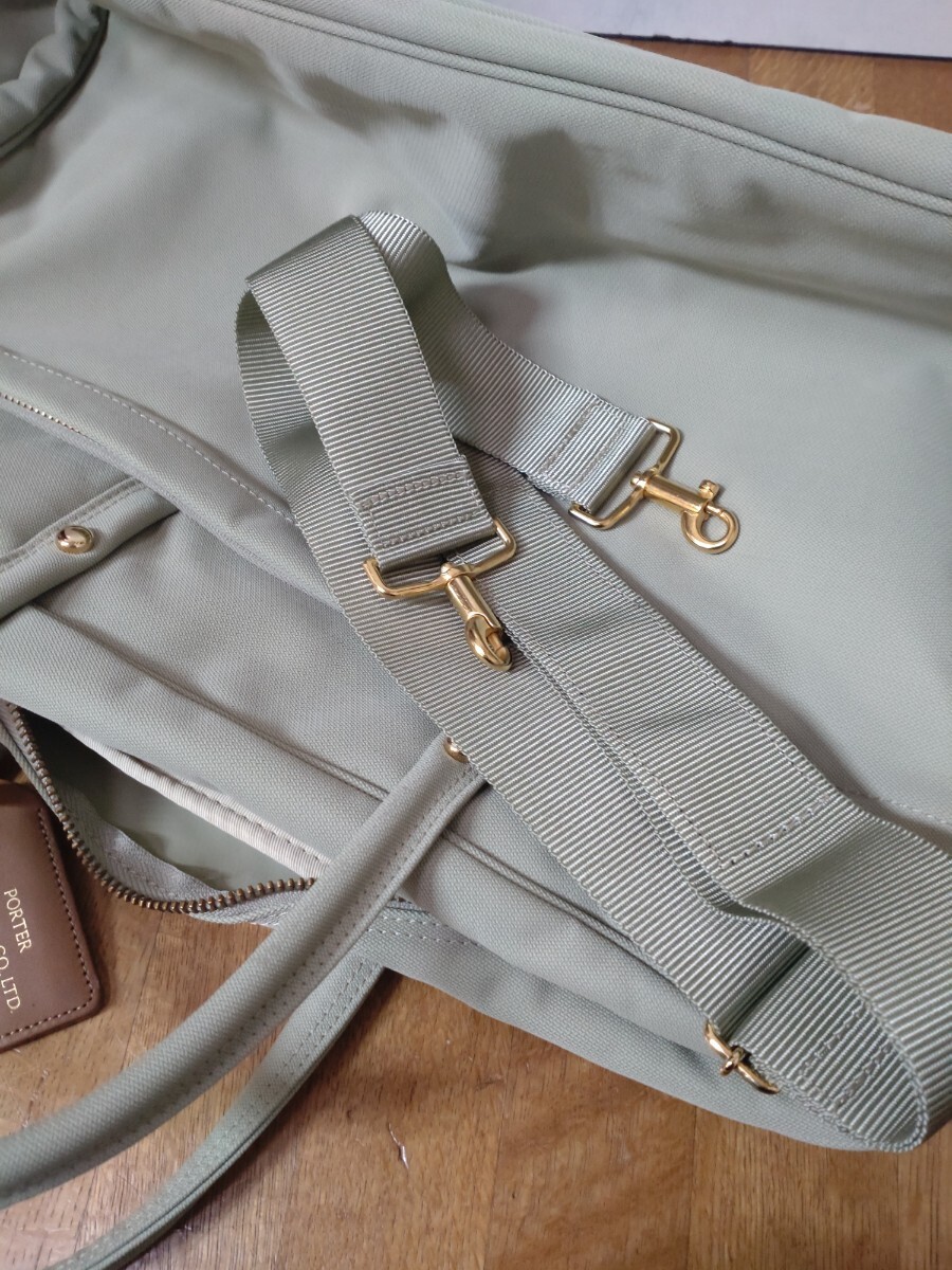 吉田かばん PORTER ポーター ボストンバッグ 未使用 淡いグリーン(5番が近いです。) 横43 縦30 まち14 前後に大きなポケット。中に貴重品ポケット。ショルダー付、 底板あり