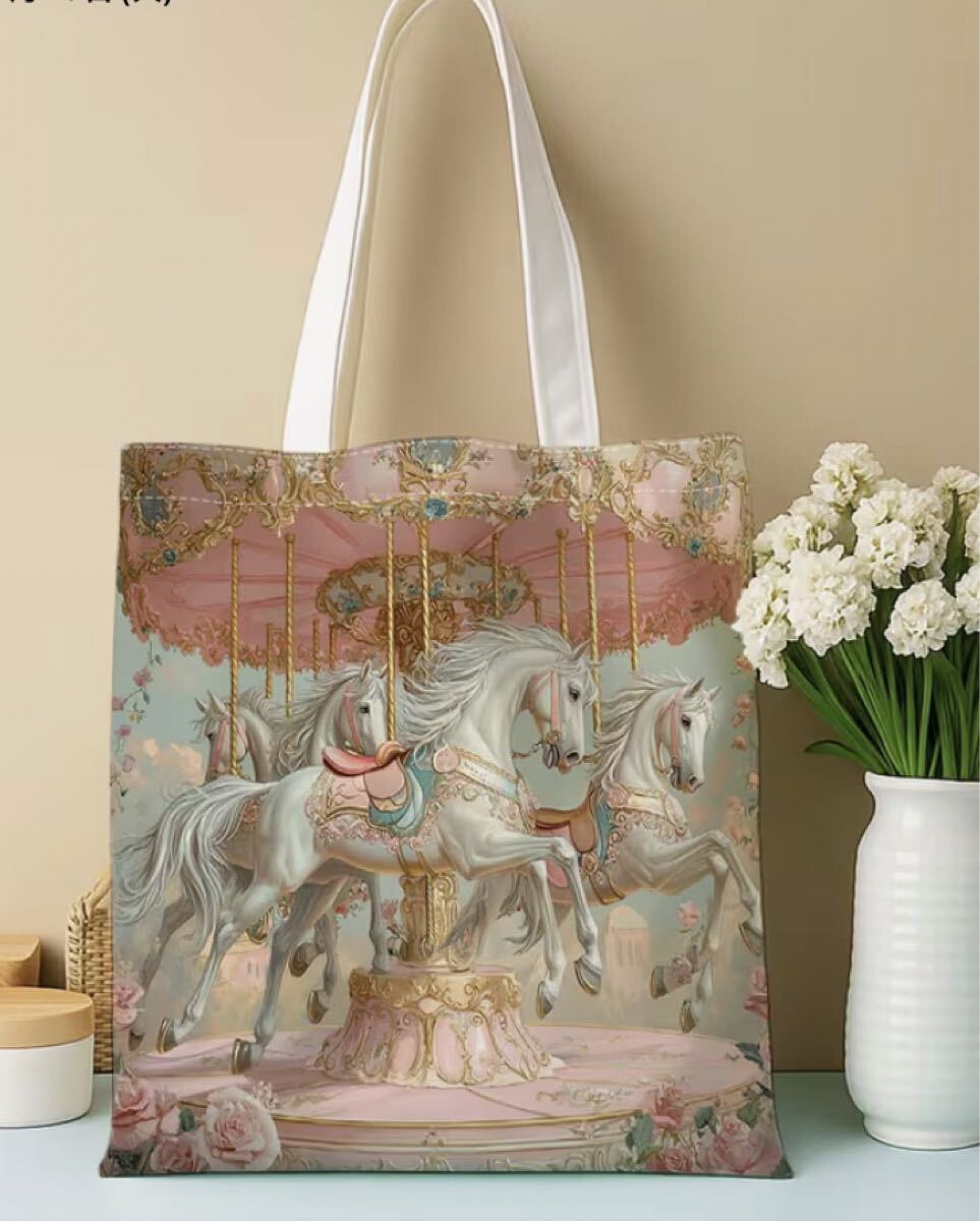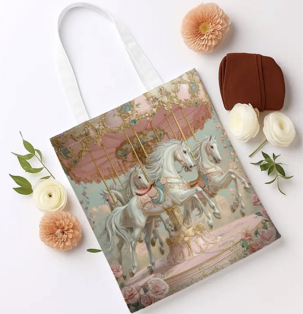お姫様が乗っていそうなロマンチックな芦毛のメリーゴーランド柄。