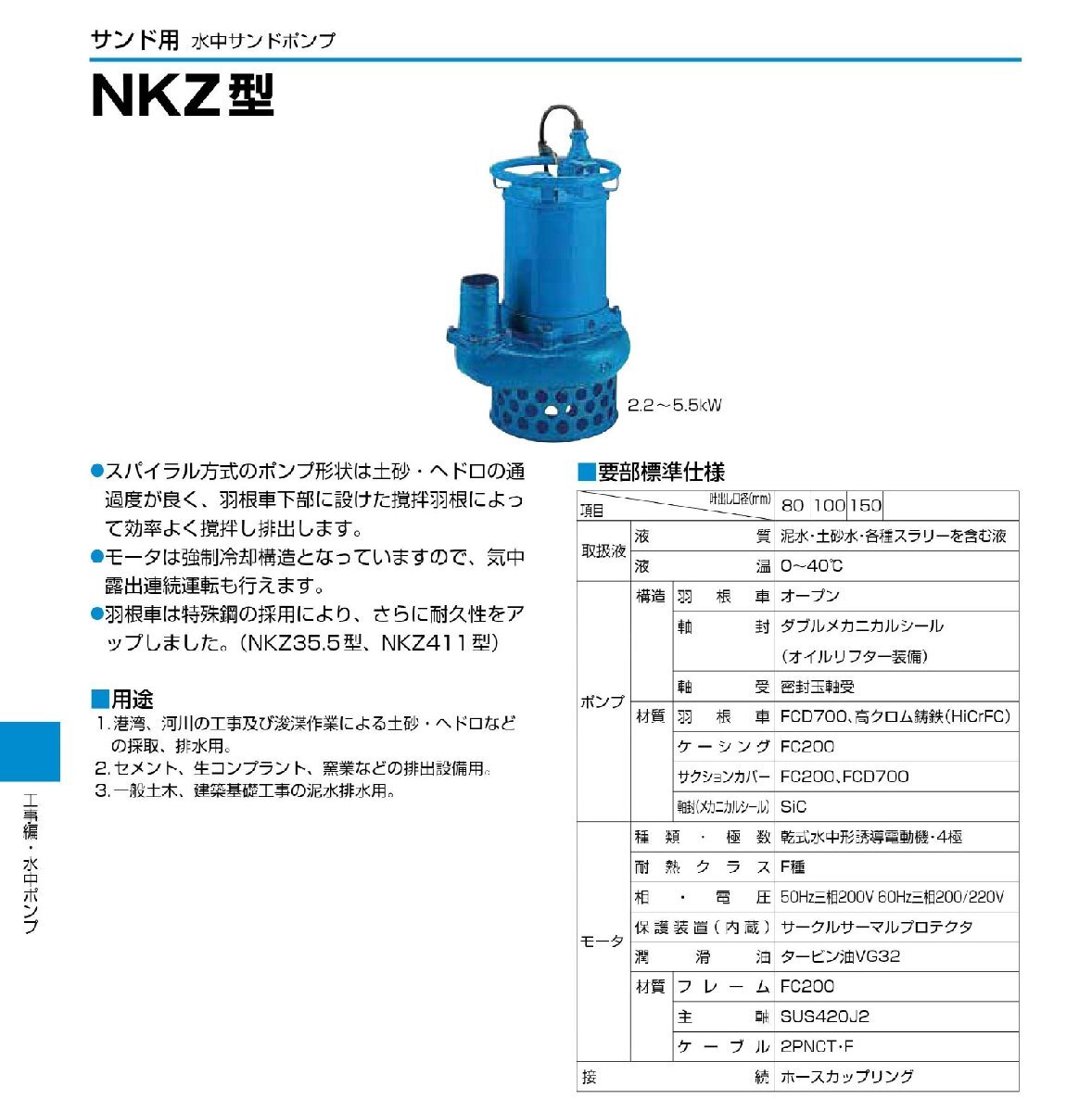 〈ツルミ〉NKZ33.7 60Hz 西日本用 サンド用 水中ポンプ NKZ型 口径80mm 出力3.7kw ツルミポンプ 代引不可