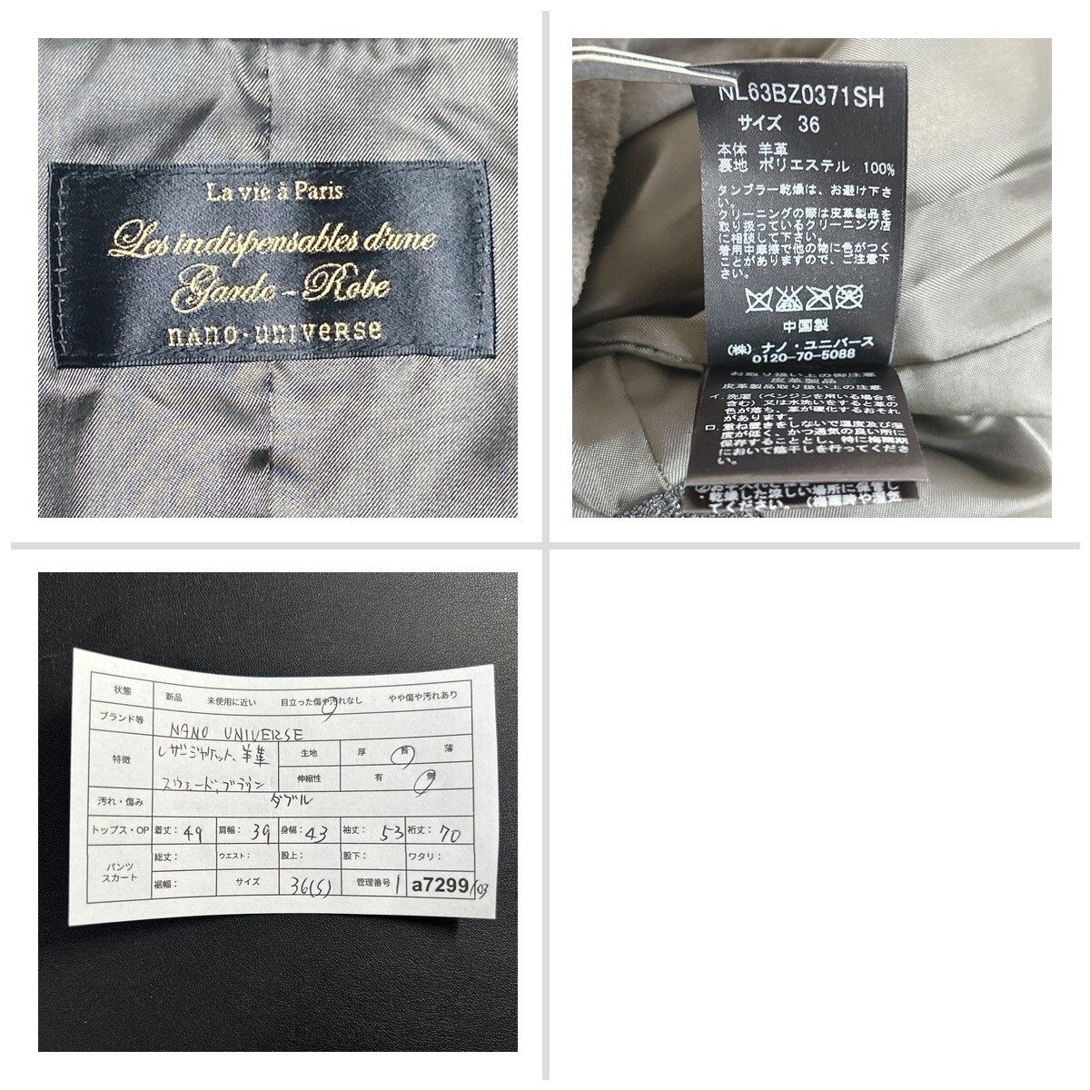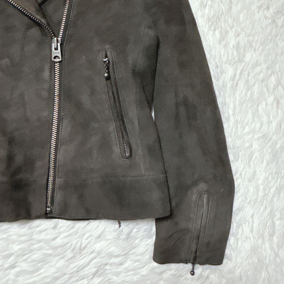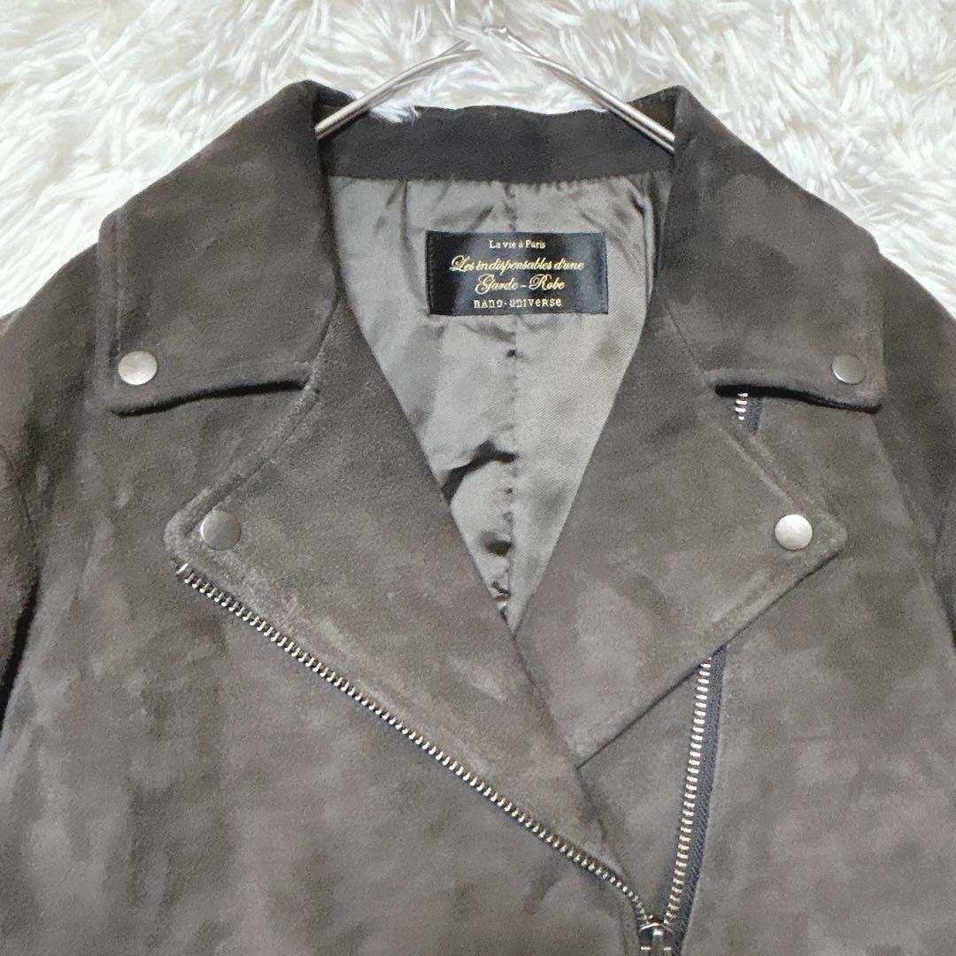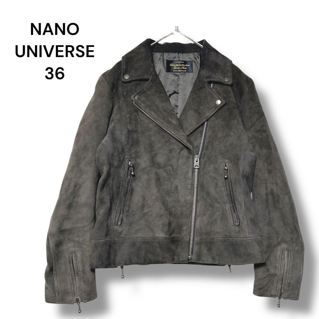 ナノユニバース レザージャケット ダブル 36 羊革 スウェード グレー 89DDD8