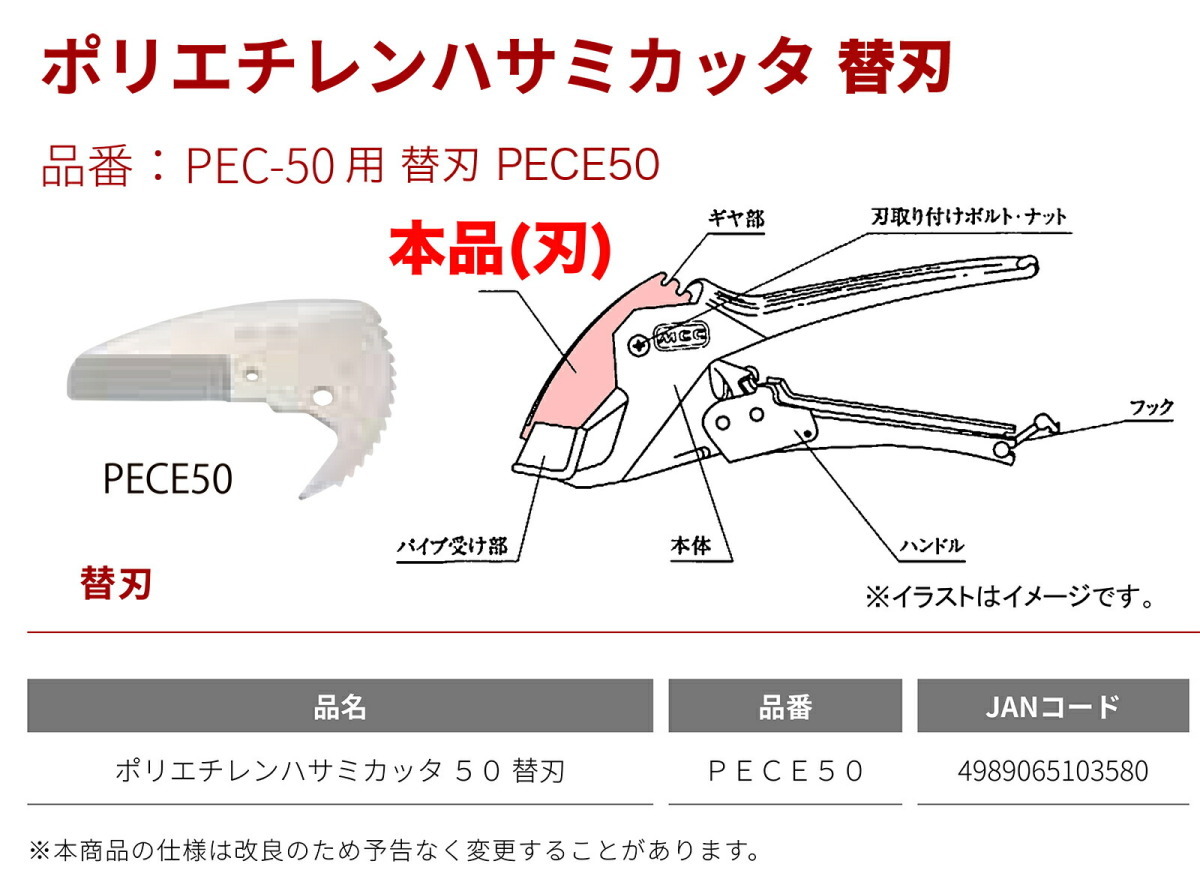 〈MCC〉ポリエチレンハサミカッタ 替刃 PECE50 JAN:4989065103580