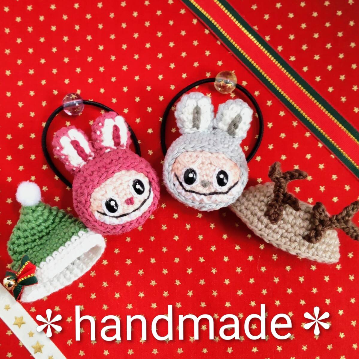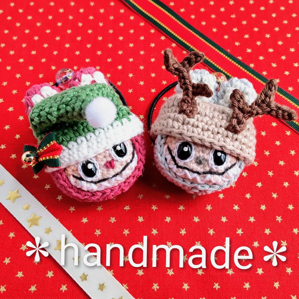 ハンドメイドあみぐるみ★ヘアゴム2個組★着せ替え:Xmasラブブ風