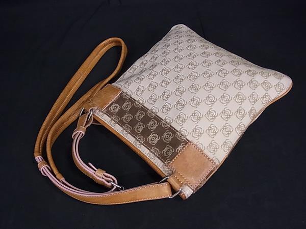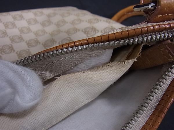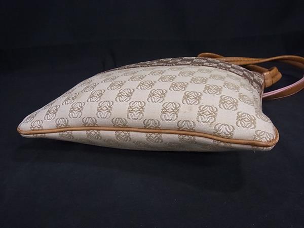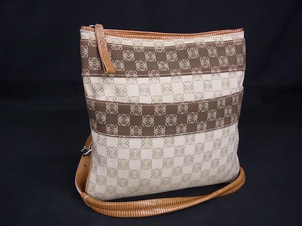1円 LOEWE ロエベ リピートアナグラム キャンバス ショルダーバッグ クロスボディ レディース ベージュ系×ブラウン系 FU3245