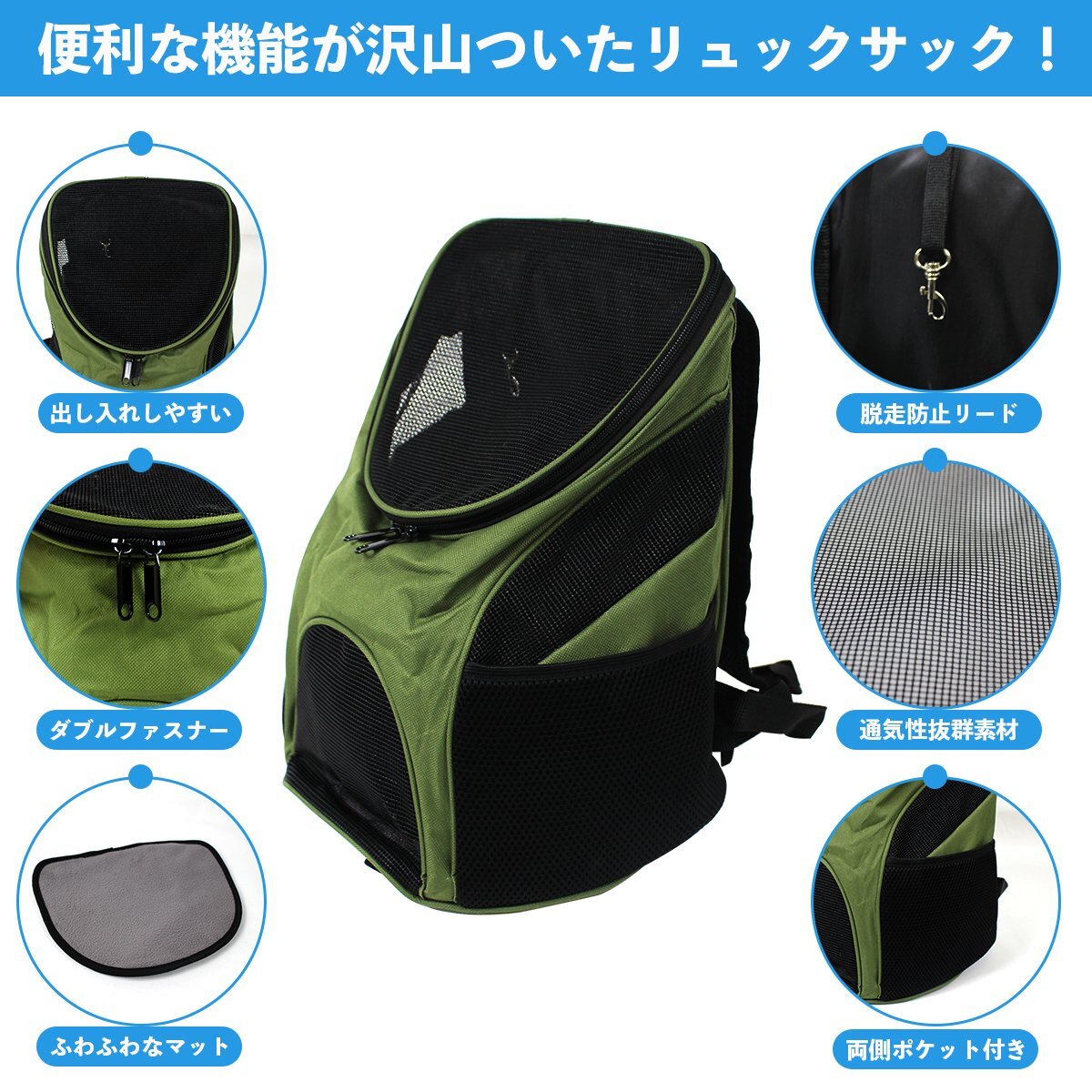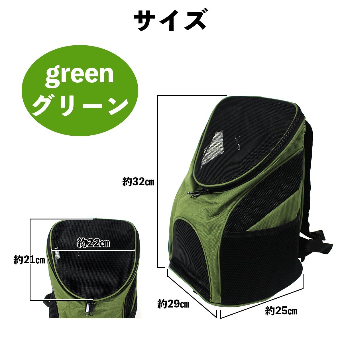 キャリーバッグ 人気のリュック型♪ メッシュ素材 ペットバッグ 耐荷2.5kg 小型犬/猫用 グリーン ペットキャリー お散歩 お出かけ 災害