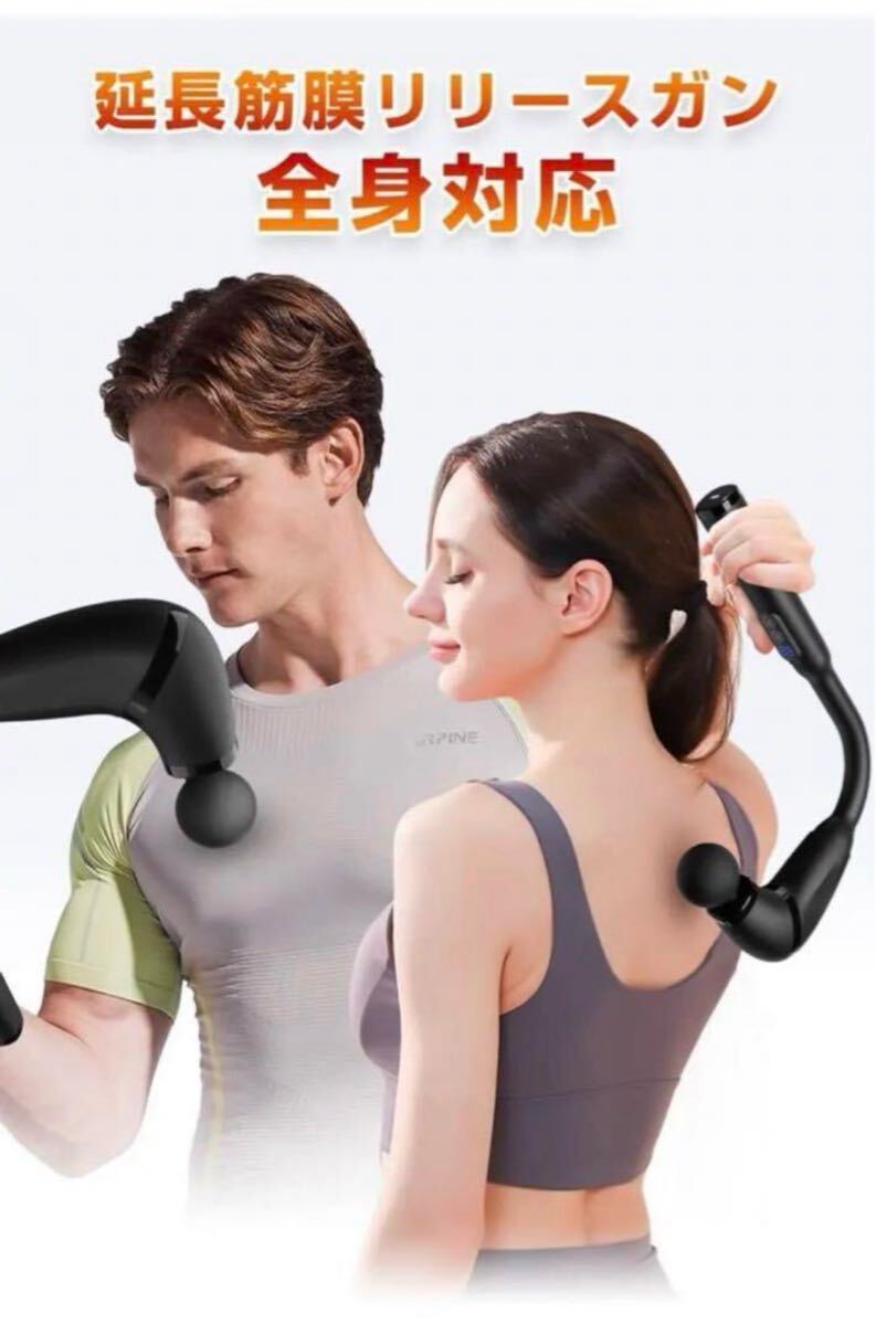 筋膜リリースガン【最新長柄設計 背中まで届く 10mmの深層振幅 22段階強度調整 4個ヘッド付属】ハンディガン 筋膜リリース
