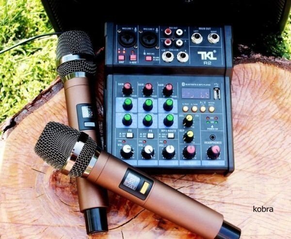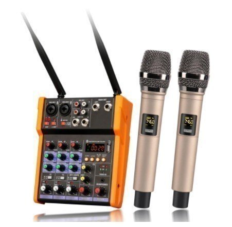 ワイヤレスマイク付き4チャンネルオーディオミキサー★ミキシングコンソール★マイクロフォン付きです【新品】 3色選択可
