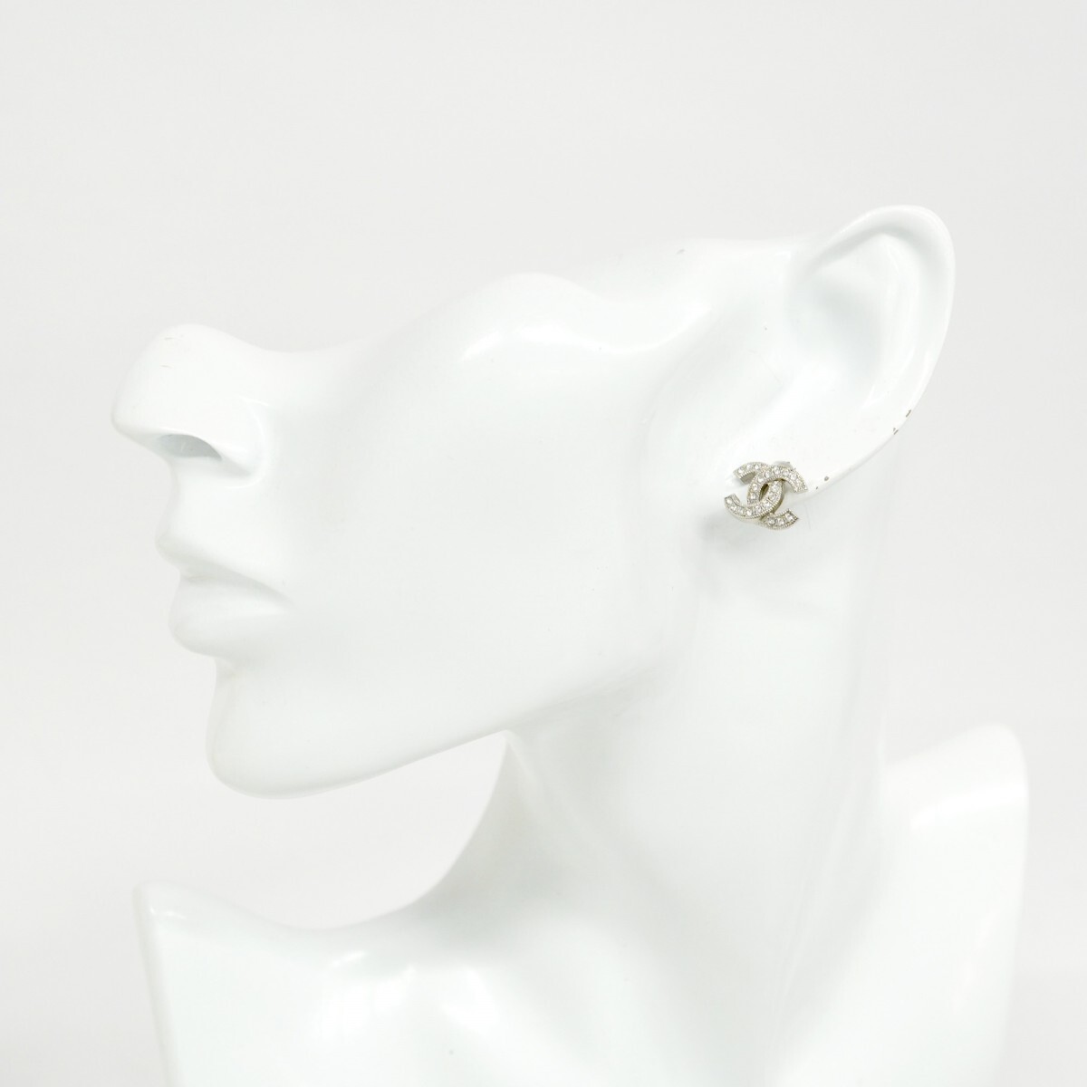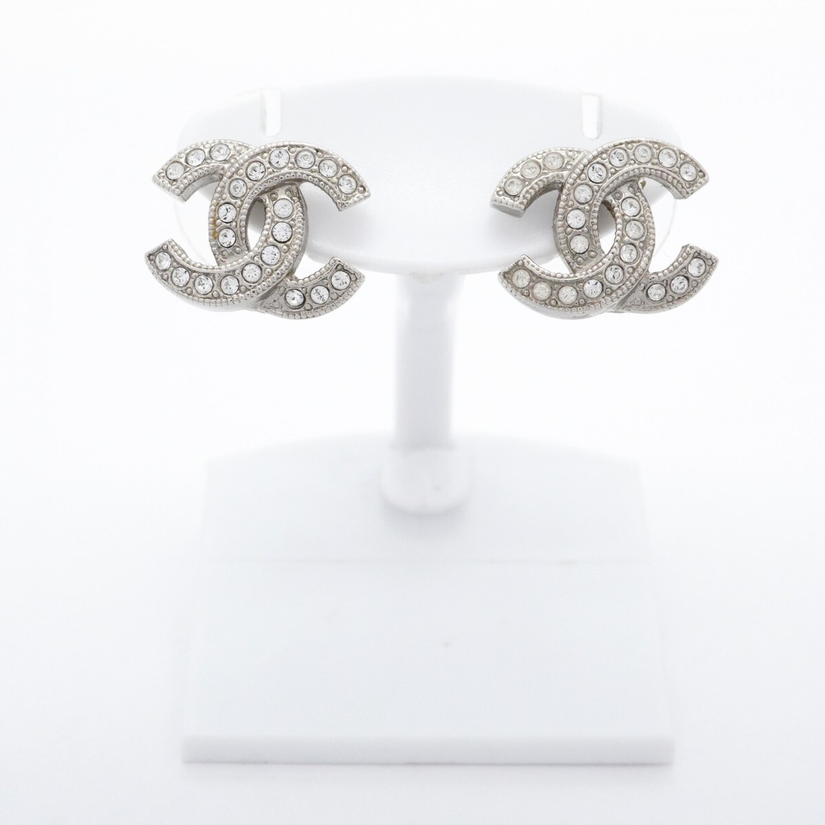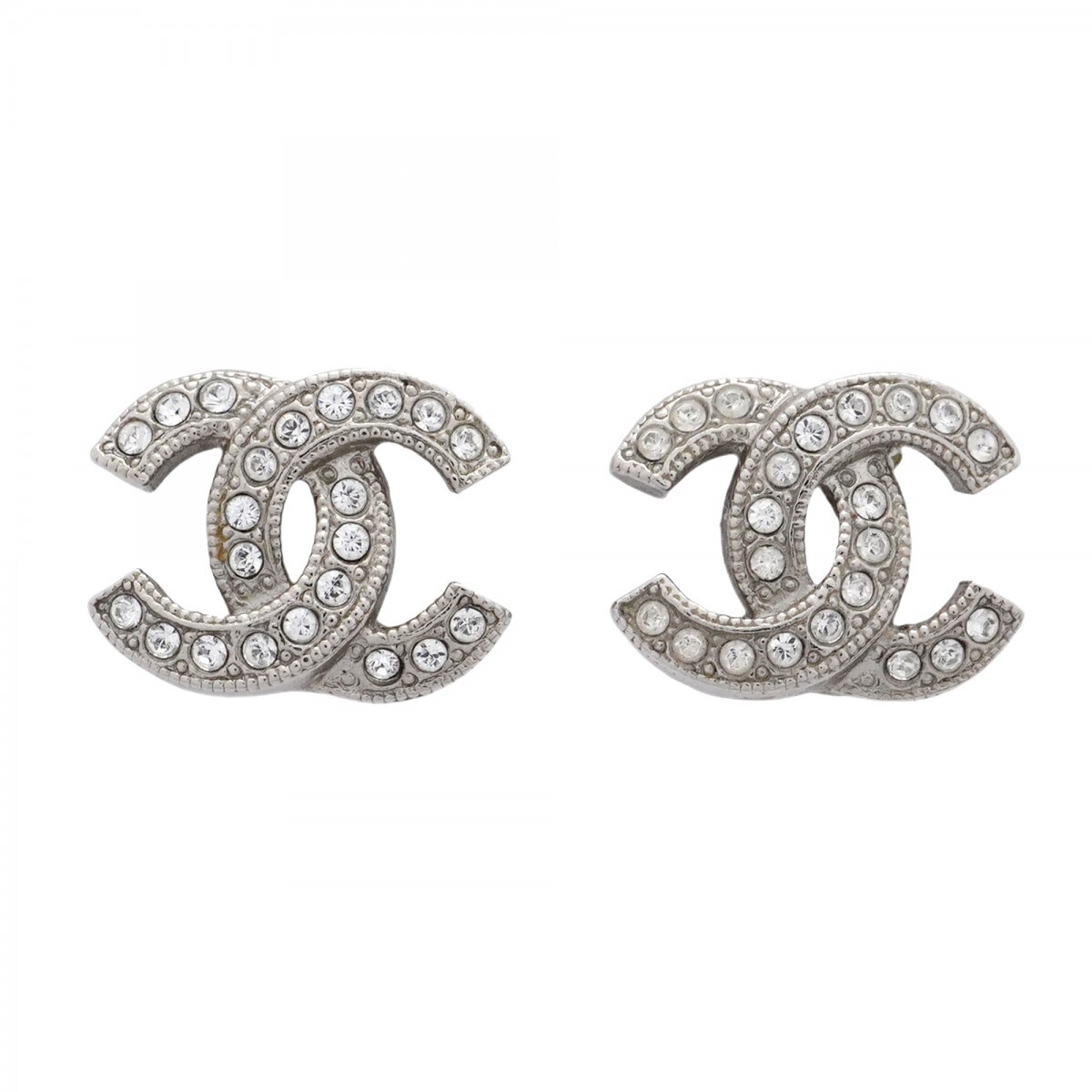 【5job0415】シャネル ピアス ココマーク メタル ラインストーン シルバー【中古】レディース