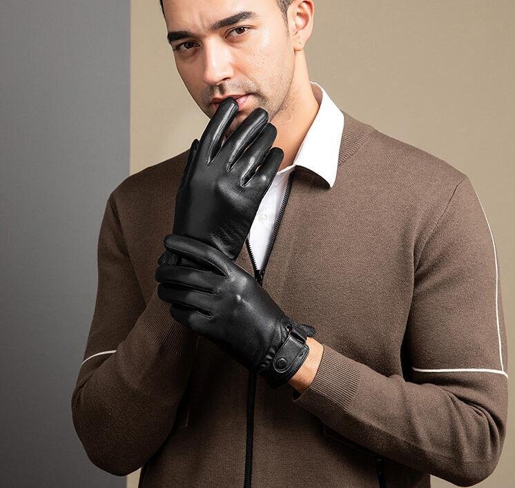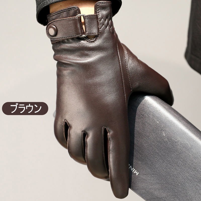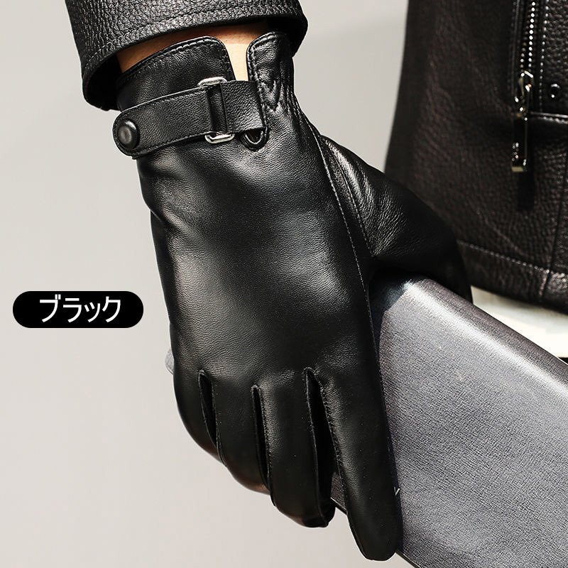 メンズ 男性用 手袋 本革 羊革 革手袋 スマホ対応 運転用手袋 おしゃれ 大きい 裏起毛 防風 防寒 手袋 通勤 暖かい 柔らかい ☆ブラック
