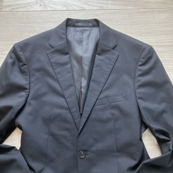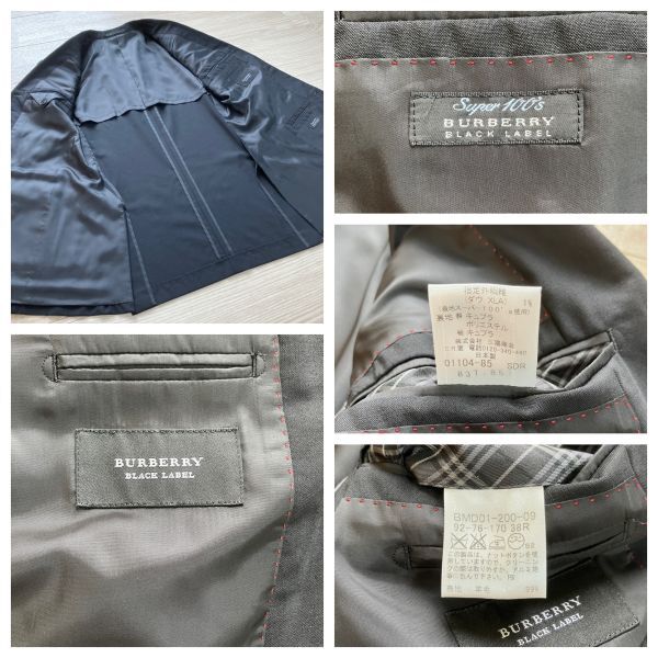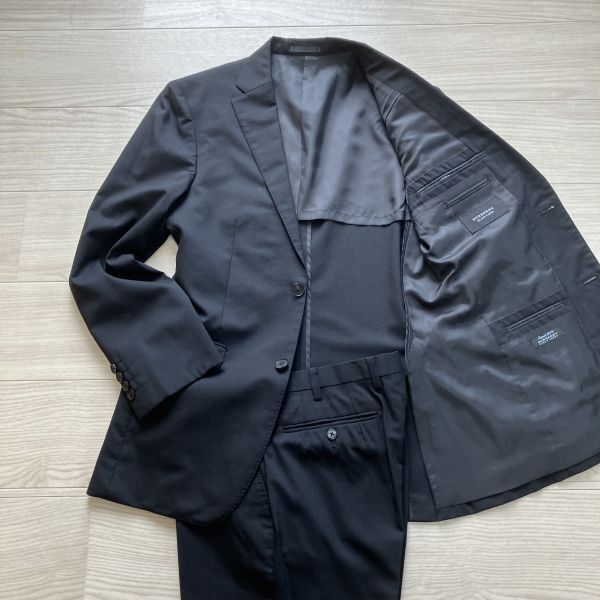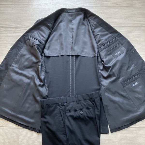 BURBERRY BLACK LABEL バーバリーブラックレーベル 38R(Lサイズ程度) Super100's ウール セットアップ ブラック 黒 メンズ スーツ 背抜き
