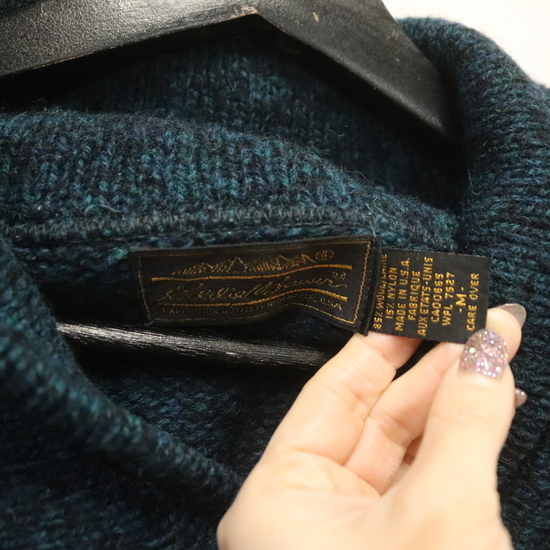 商品名 P299 80sビンテージ エディーバウアー ショールカラー ウールニットセーター USA製■1980年代製 表記Mサイズ グリーン 緑 古着 激安 希少