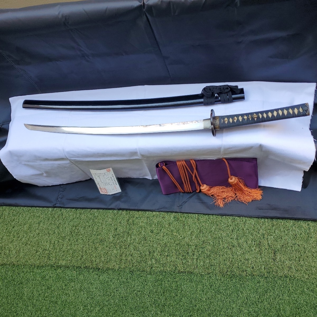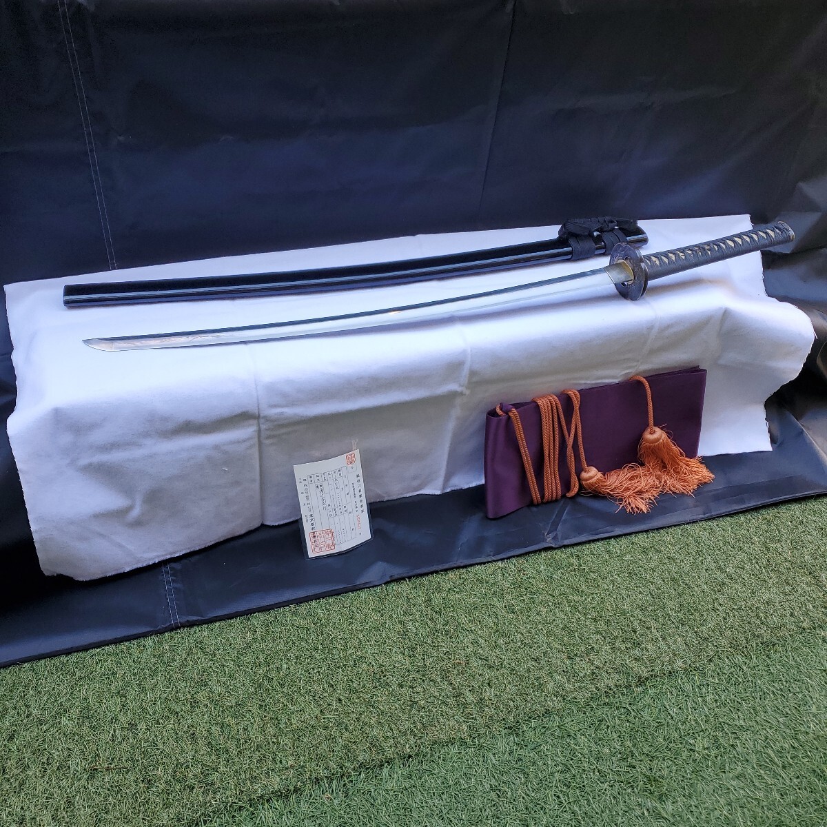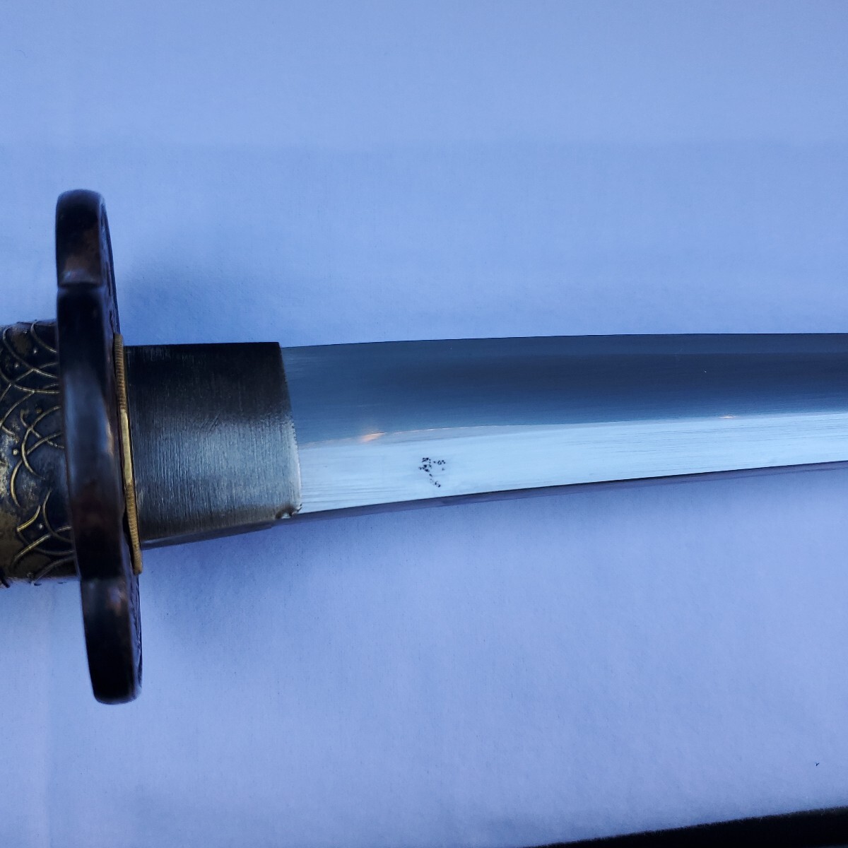 の重量もありますので抜刀には向いているのではないかと思っています。キズのご報告としましては、写真⑥で黒い斑点が付いている以外は気になる箇所はないかと思います。尚、写真撮りの上で素人感が出ていますが出品数も少ないので御容赦下さい。また、ご購入の際は返品扱いはございませんのでご理解下さいますようお願いいたします。
