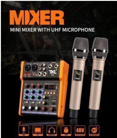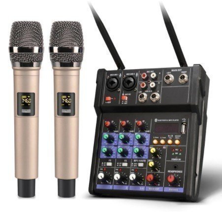 家庭用カラオケ ◆KTV ワイヤレスマイク付き4チャンネルオーディオミキサー◆ミキシングコンソール