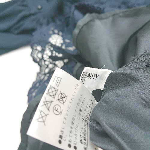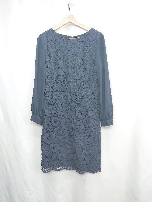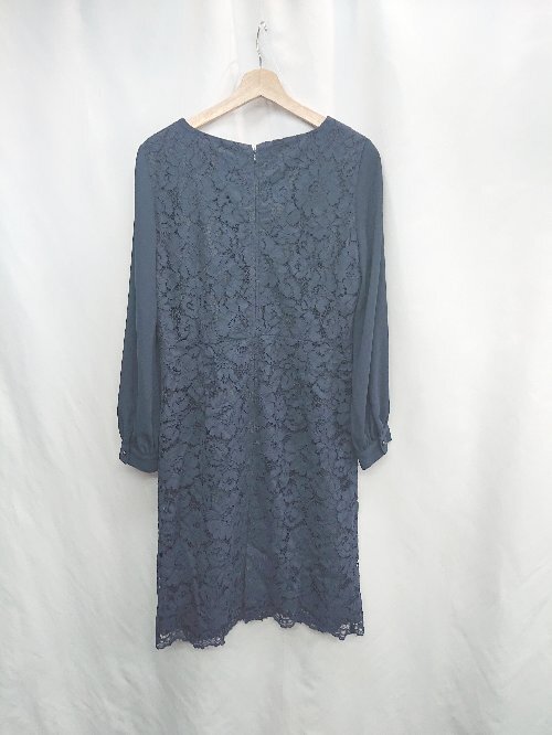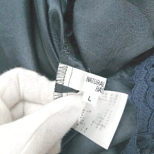 ◇ ⊂ NATURAL BEAUTY BASIC 長袖 ひざ丈 ワンピース サイズL ネイビー レディース E