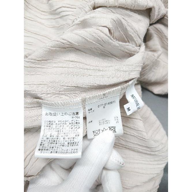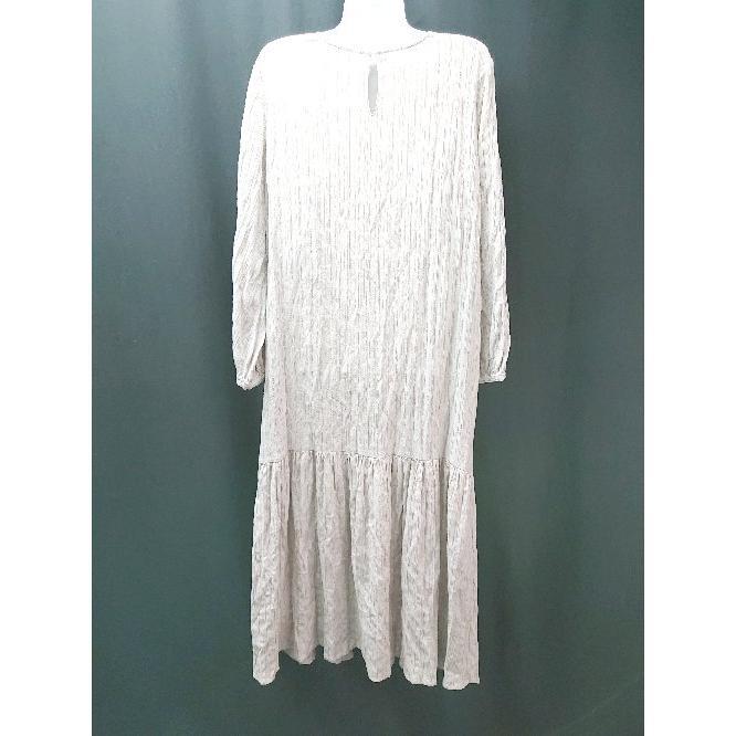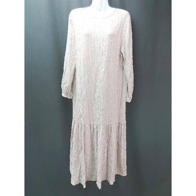 ◇ NATURAL BEAUTY BASIC Uネック ギャザー シンプル おしゃれ 長袖 ひざ丈 ワンピース サイズM ベージュ レディース E