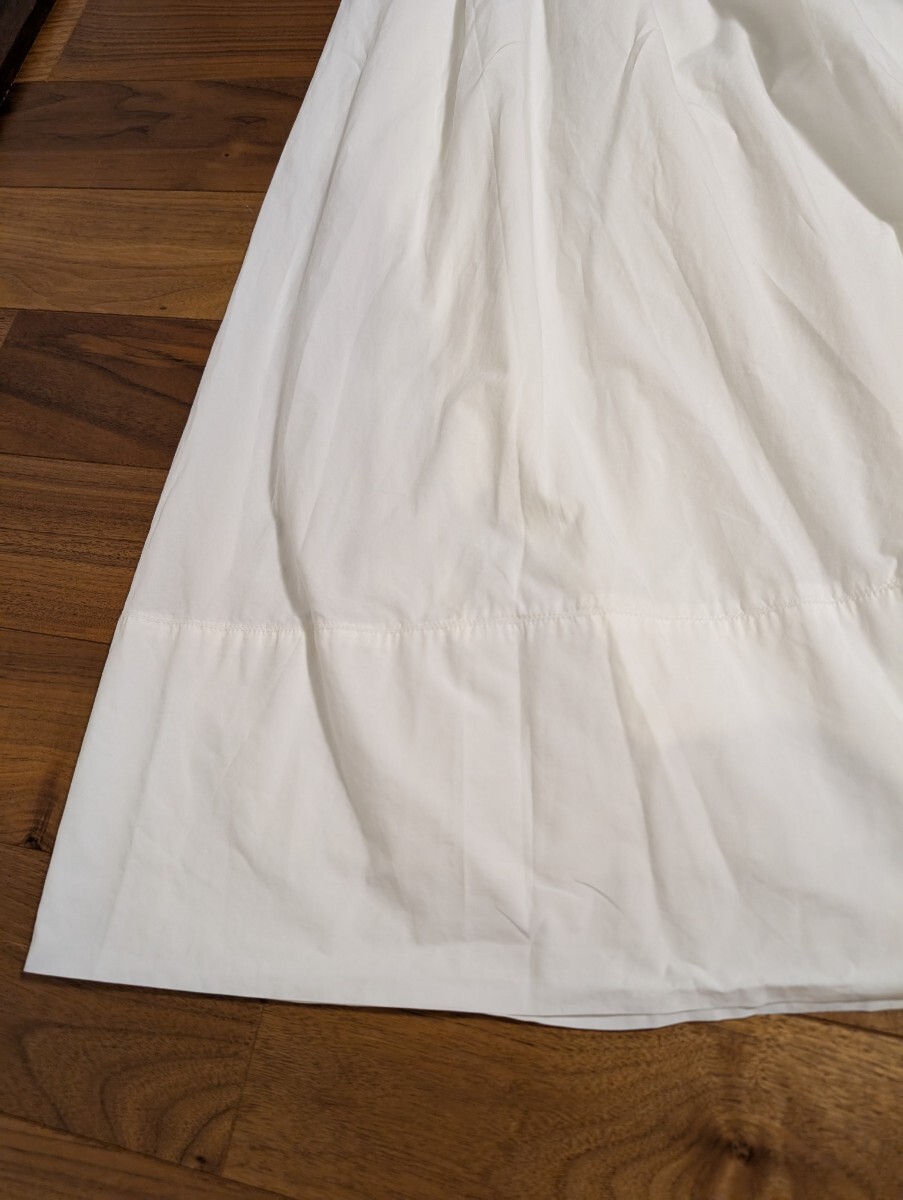 裾から15センチほど折り返しがあり、それによって適度な重みがありますので、シルエットが綺麗です。ウエストの後ろ側はゴムです。