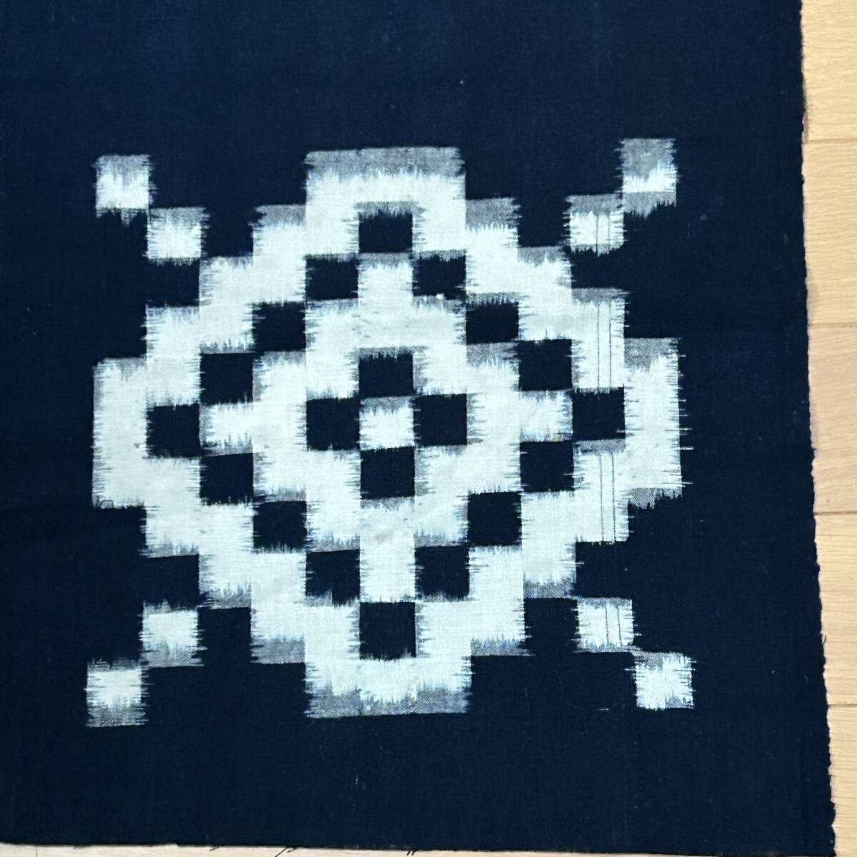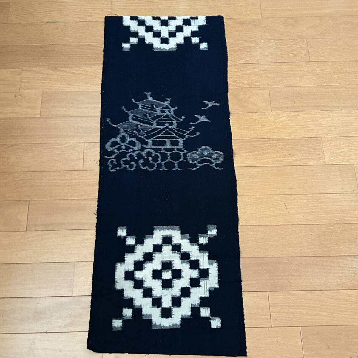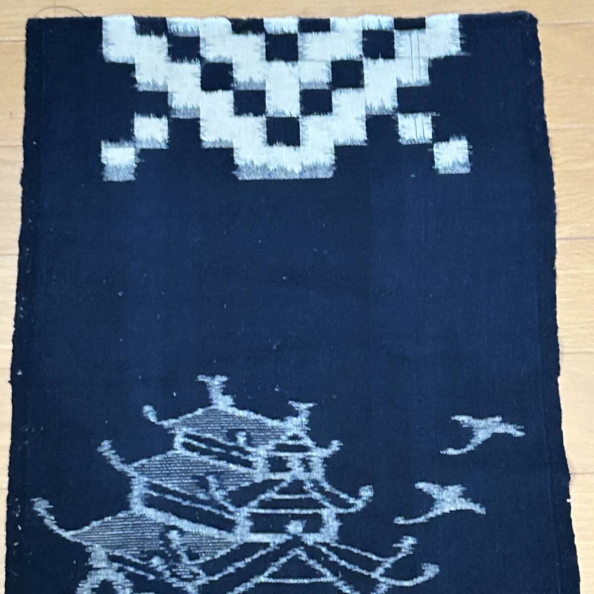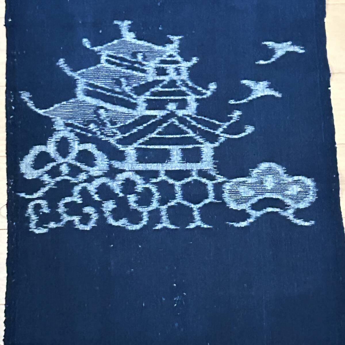 【37】古布・藍染・木綿・伊予絣?・松山城?■33×90■アンティーク・リメイク・細工・パッチワーク
