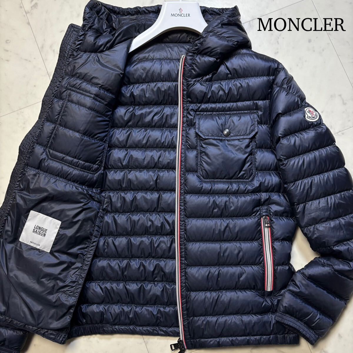 極美品★ MONCLER モンクレール DOURET ダウンジャケット パーカー ブルゾン アウター Mサイズ LONGUE SAISON ワッペン ネイビー メンズ