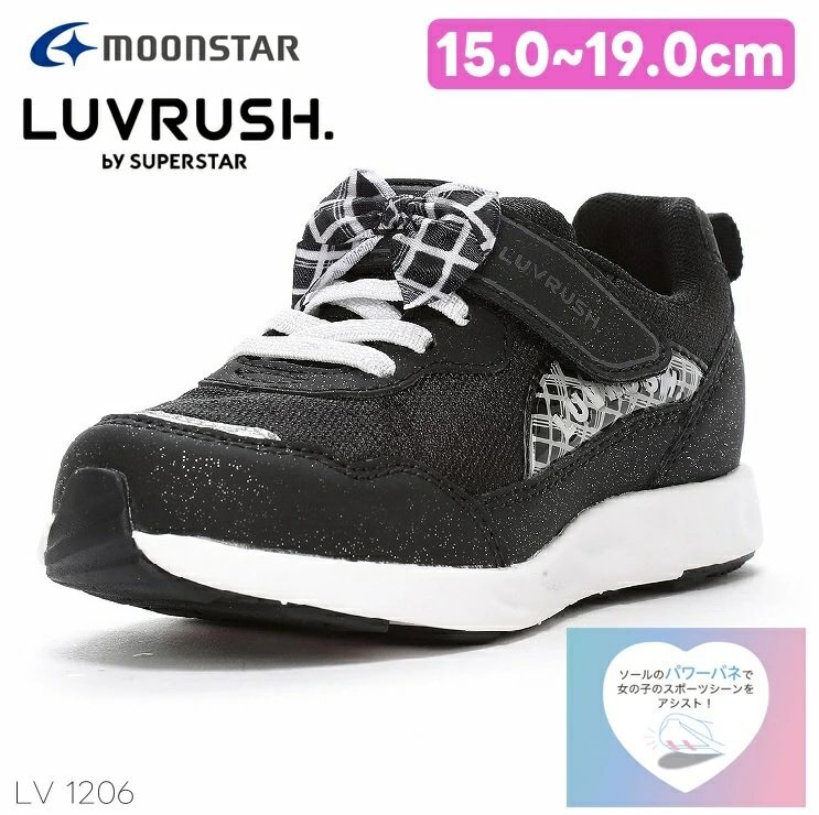 | 『もっと可愛く!もっと速く!女の子のスポーツシーンを足元から応援!』 をコンセプトにガールズ向けに誕生した「ラブラッシュ バイ スーパースター」のキッズシューズです。 「速く走る」を体現するために搭載されたパワーバネが走りをアシストします。 重さは17.0cmで片足約120gです。 【パワーバネ】ムーンスター独自開発の特殊なゴムを靴底に搭載し、地面を踏みこむときにパワーを蓄積し、蹴り出すと同時に一気にパワーを推進力に。 【Ag+抗菌防臭】銀イオンの抗菌作用でにおいのもととなる菌の増殖を抑制し、防臭効果を発揮します。 【洗えるインソール】インソールは取り出して洗えるのでいつも清潔に保てます。 【耐摩耗ラバー】靴底にはすり減りが少なく、高い耐久性を発揮するラバーを採用しています。 【軽量設計】軽くなるよう工夫を施した設計です。光沢感のある合成皮革を使ったガーリーなシューズです。 サイドのビッグロゴやチェック柄のリボンでかわいらしい印象に! 卒園式や入学式にもピッタリです。 同じ素材やチェック柄を使った「LV 1211」と姉妹コーデもおすすめです。 | |