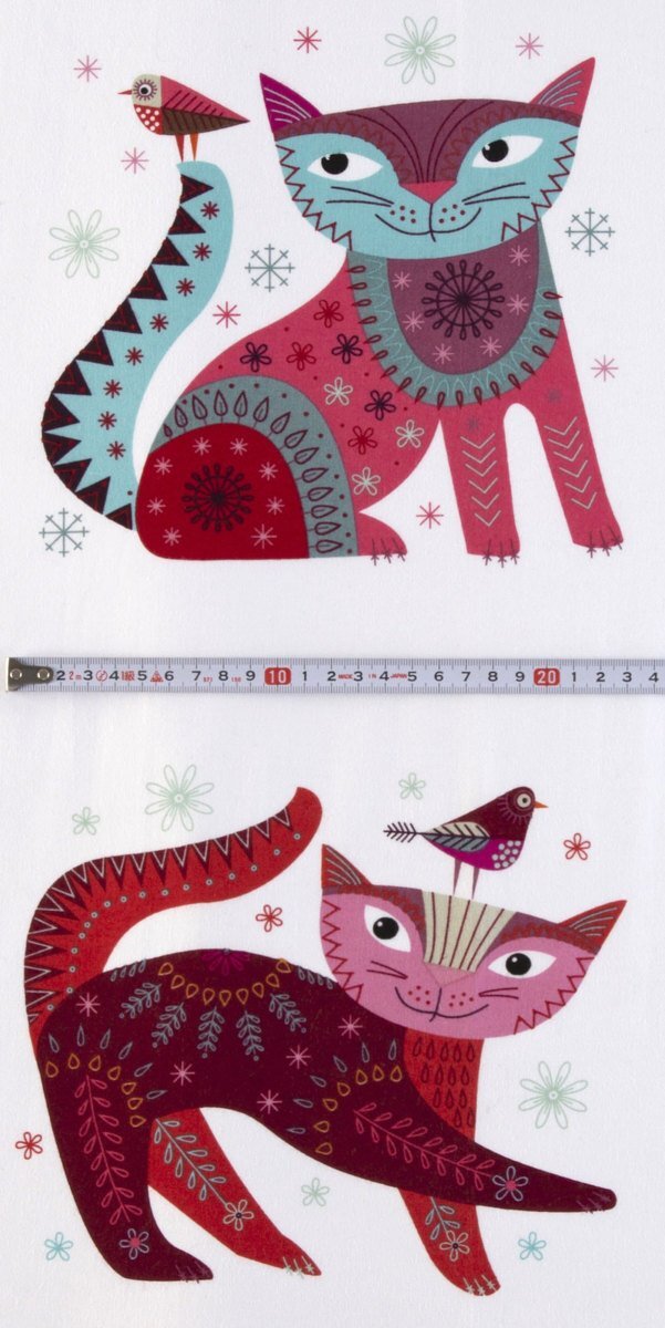 モチーフはネコと小鳥とお花。