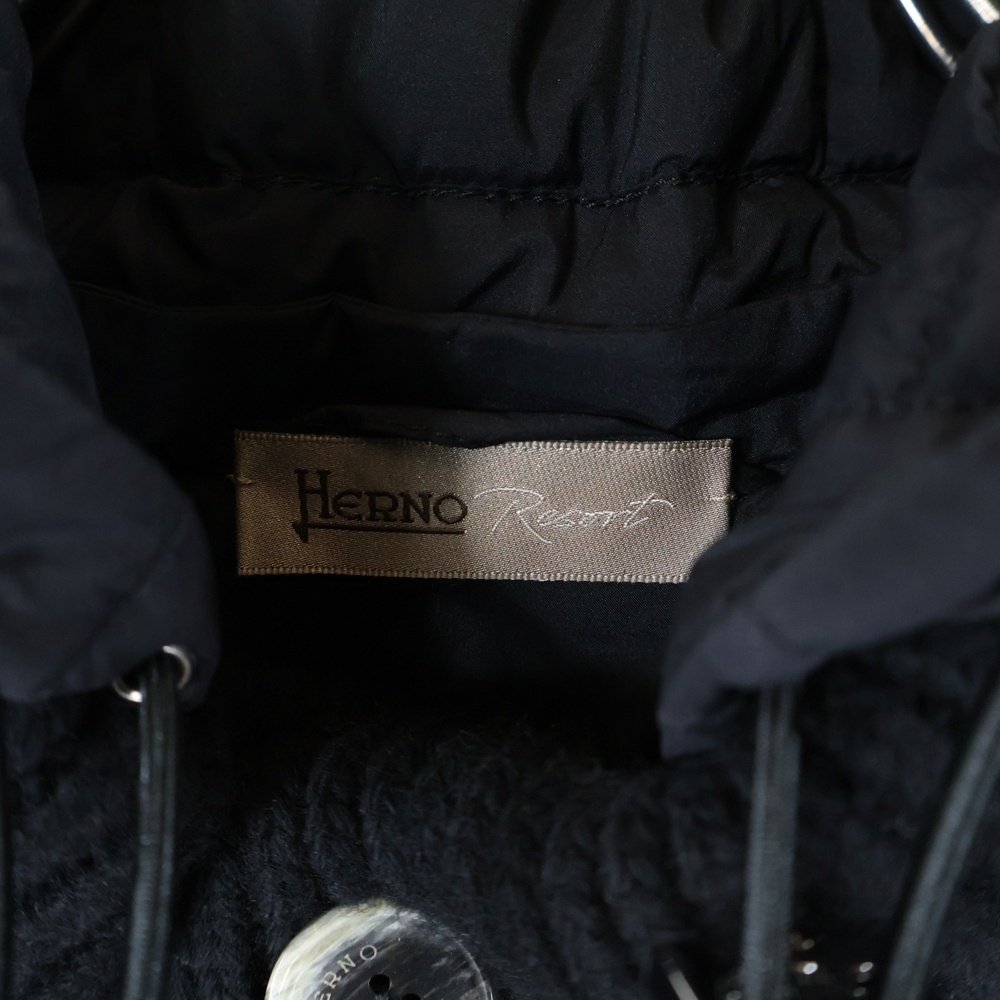 HERNO ヘルノ RESORT リゾート ミドルゲージウールフィッシャーマンズリブフーディーニットベスト ブラック MC009UR