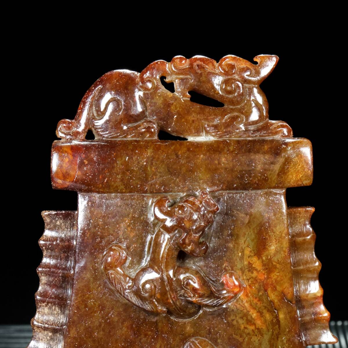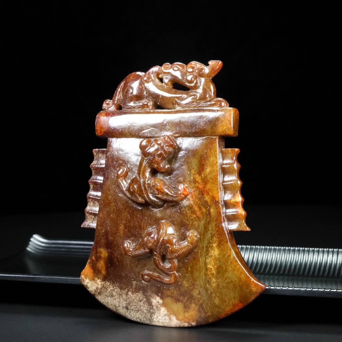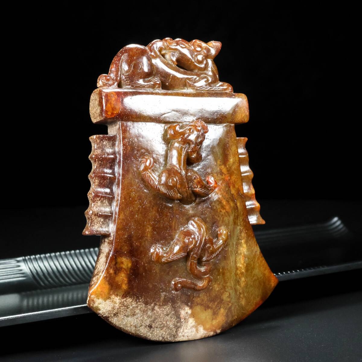 旧蔵 清 玉彫 和田玉 玉斧 玉質繊細 包漿重厚 沁色入骨 極細工 中国古玩 骨董品 古美味 211