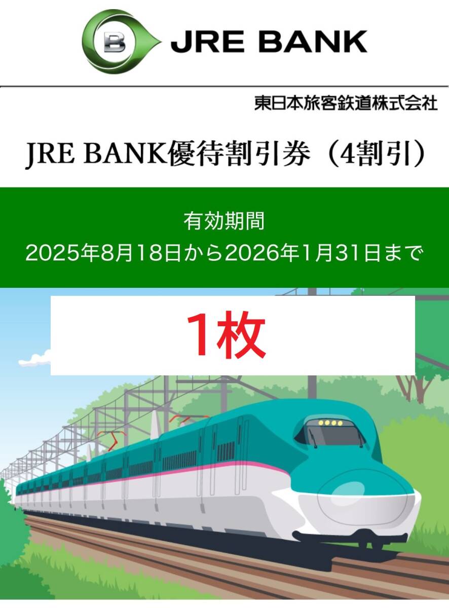 ☆匿名配送 即決 送料無料 JRE BANK 優待割引券 (4割引) 1枚 有効期限 2026年1月31日迄☆
