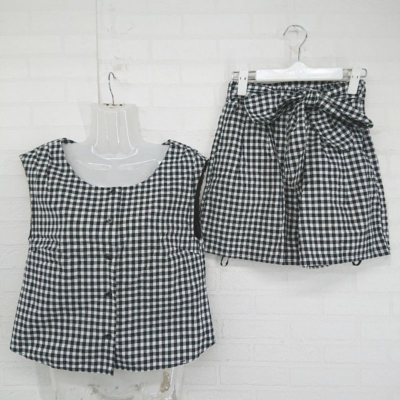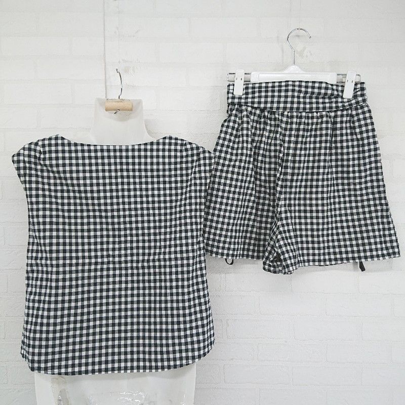 ◇ ◎ Heather ギンガムチェック シャツ ショート パンツ セットアップ 上下 サイズF ブラック ホワイト レディース E