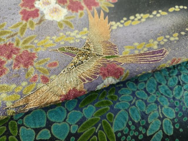 | 【正絹・五つ紋・比翼仕立て】 状態は接写画像のように下前胸付近に若干の薄い汚れがございますが その他特に目立ったシミ汚れなどもなく大変良い状態です。 大変上質な逸品になります。 お安く出品致しますので、是非この機会にいかがでしょうか? ※金彩部分に剥がれががございます。
