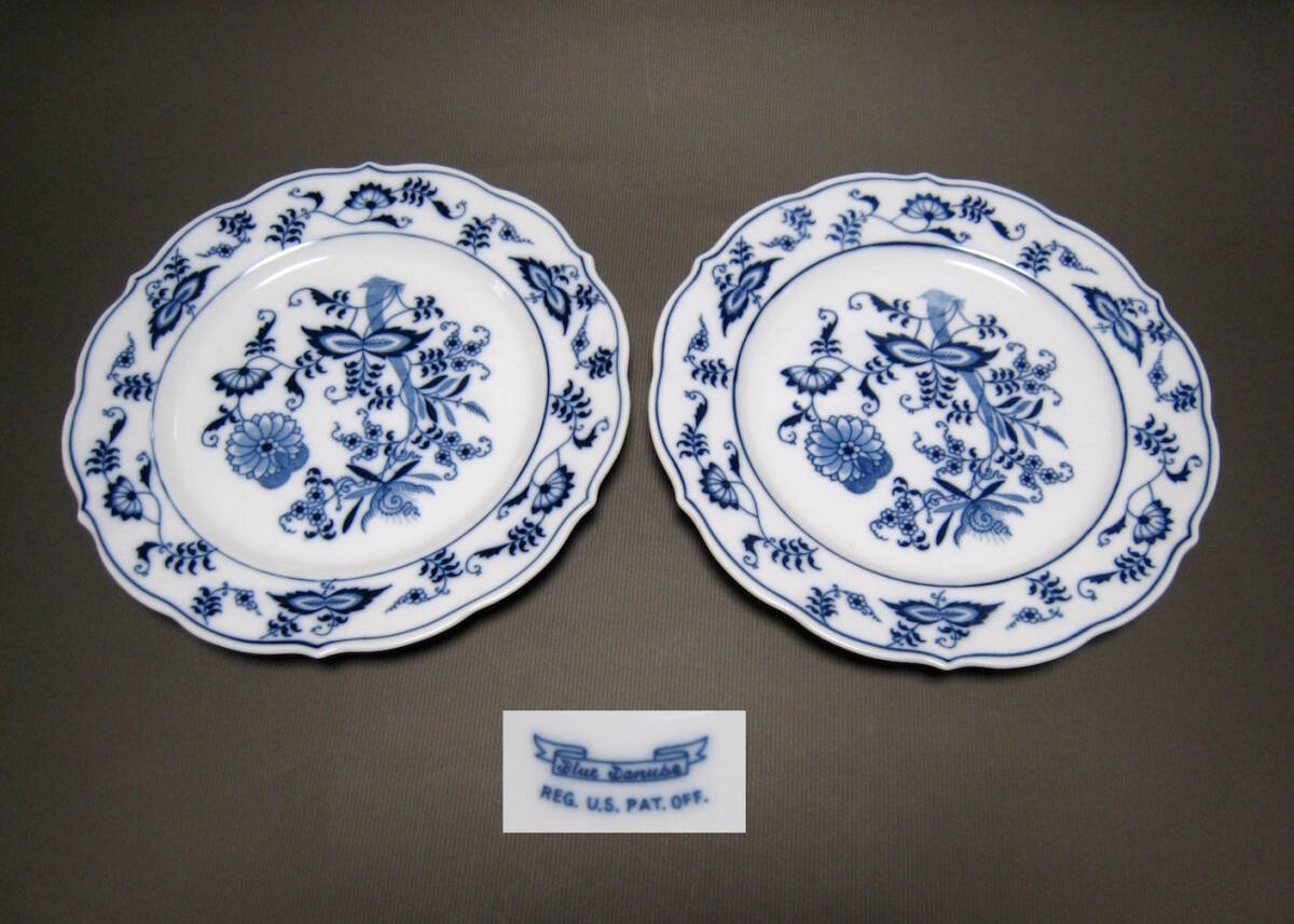 BlueDanube プレート ペア 輪花縁 22cm ビンテージ 日本のブルーオニオン ブルーダニューブ 中皿 2点