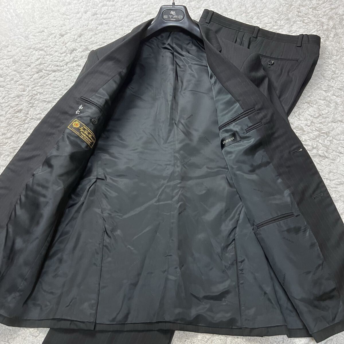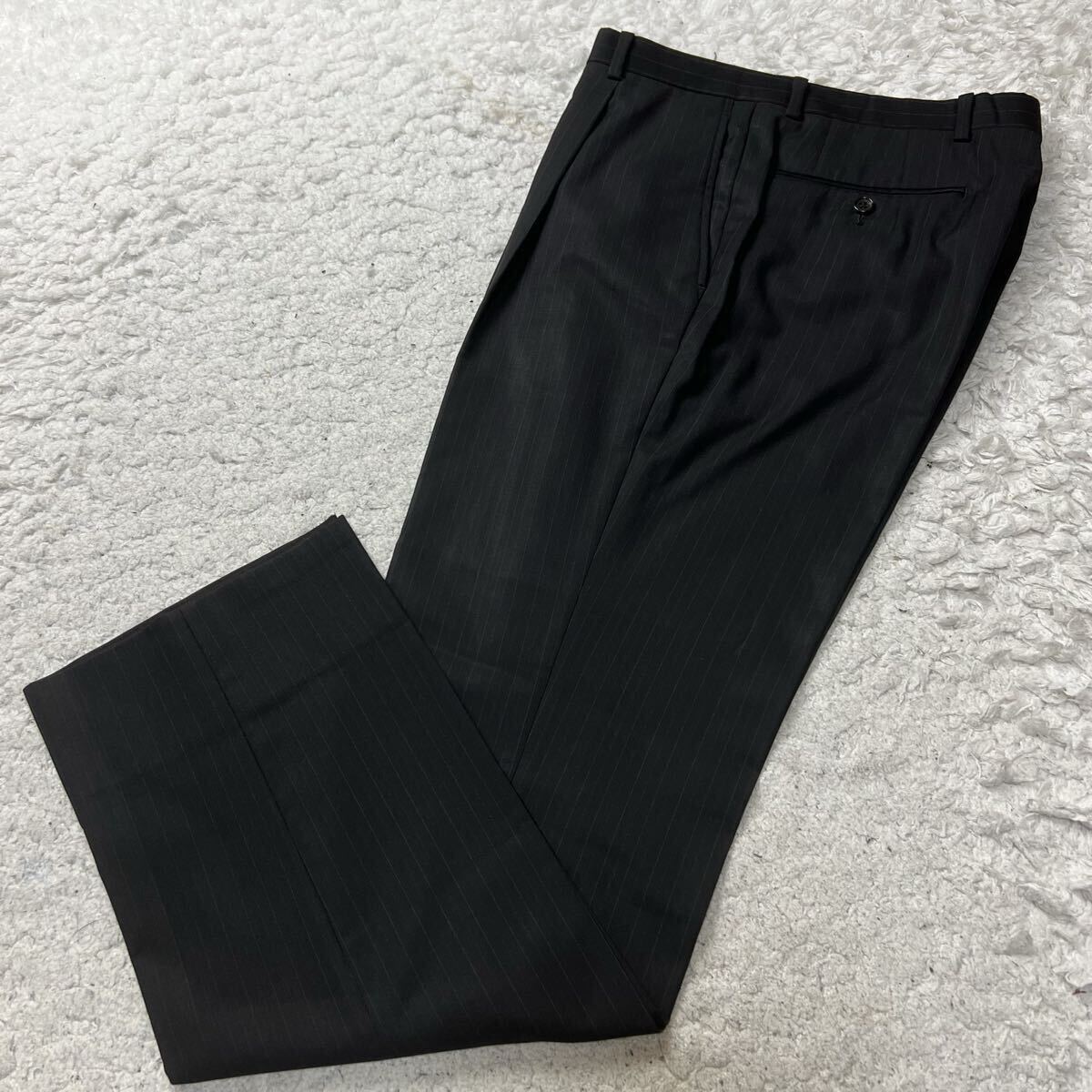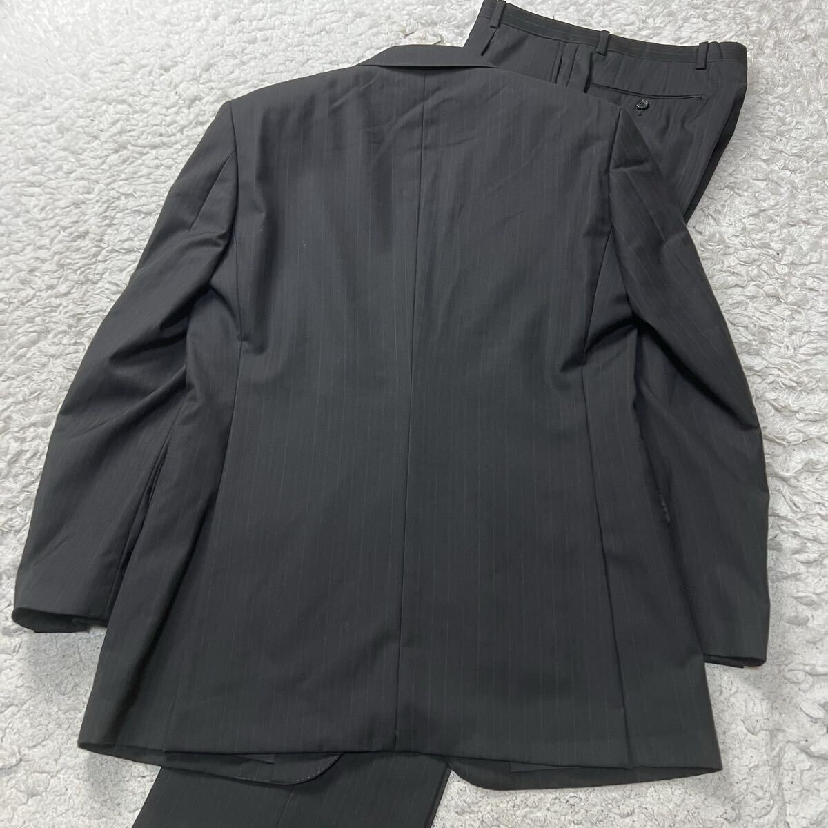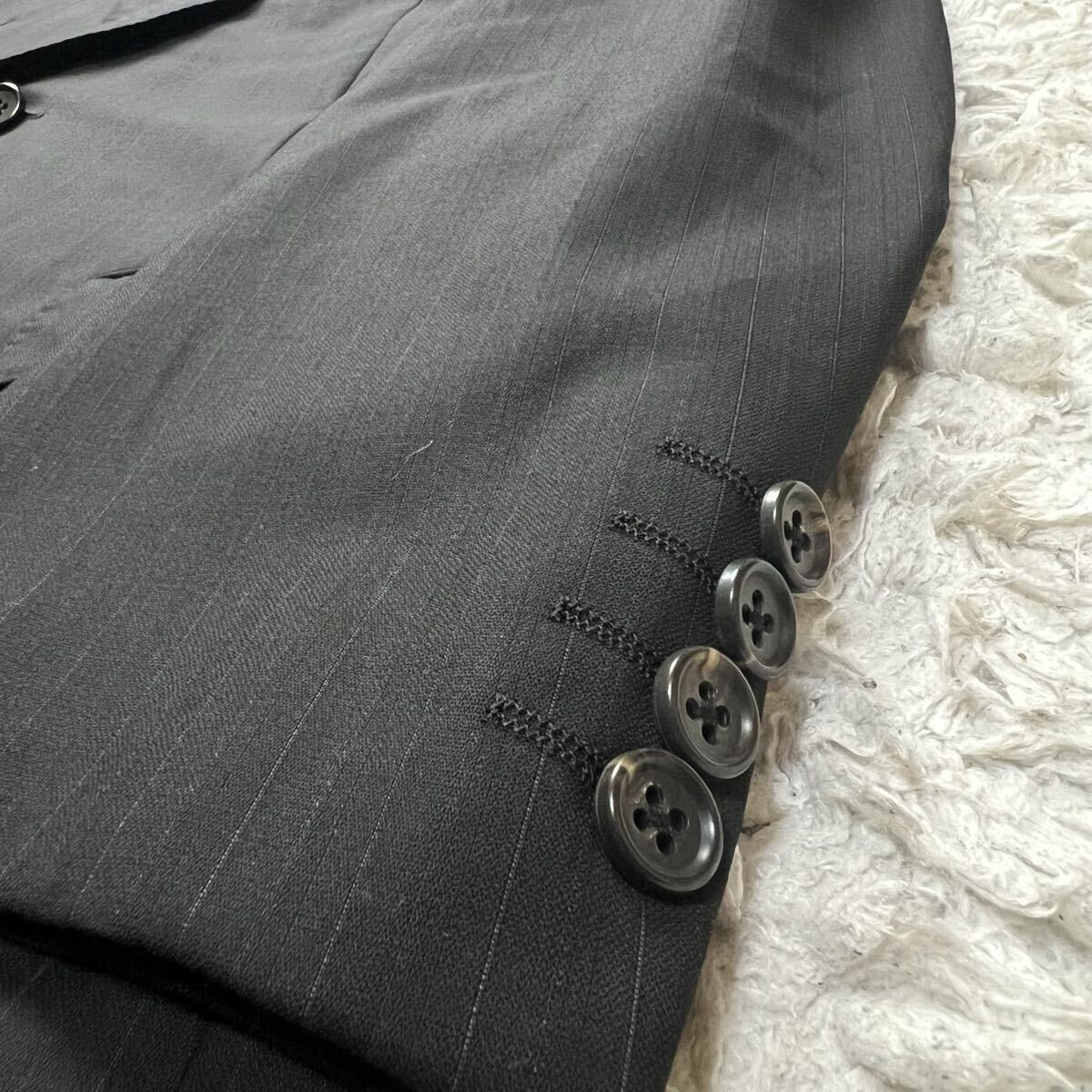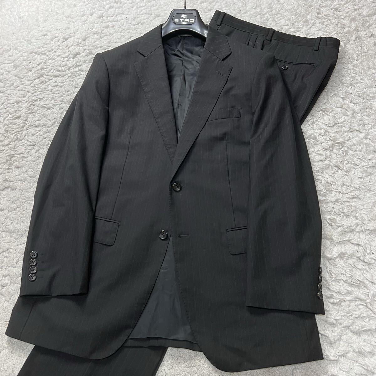 美品 / スーツセットアップ / 上下 / TASMANIAN生地 / ストライプ柄×ブラック / 総裏地 / サイドベンツ / 2ボタン / ウール100% / A6(Lサイズ)
