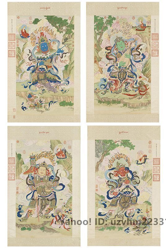 清 姚文瀚 四天王 仏像 掛画 工筆 仏画奉納掛け軸縦幅 東洋画 国画 4個セット