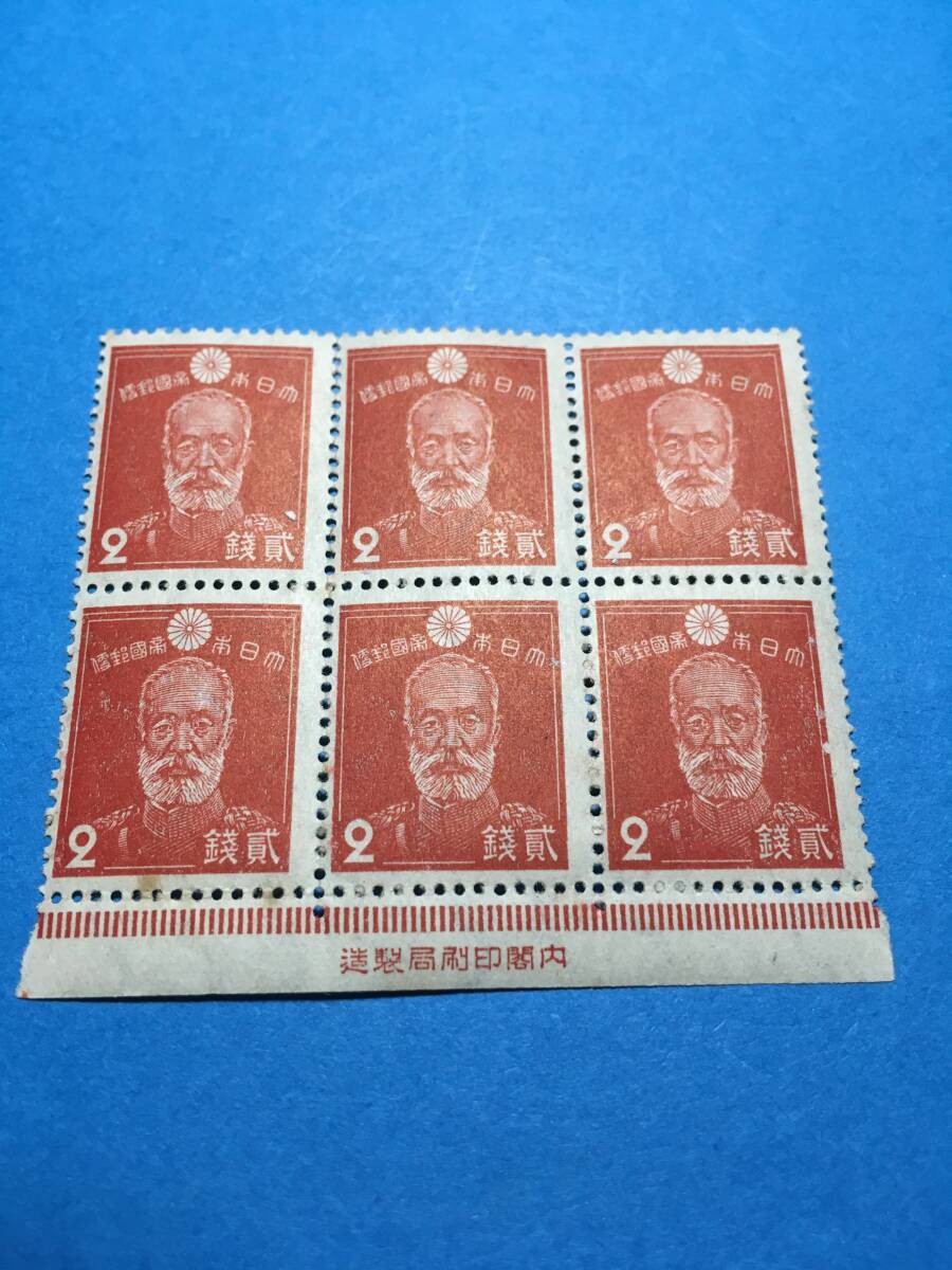 C342 第一次昭和 1次昭和 乃木大将 2銭 内閣印刷局製造 銘板付き 6枚ブロック