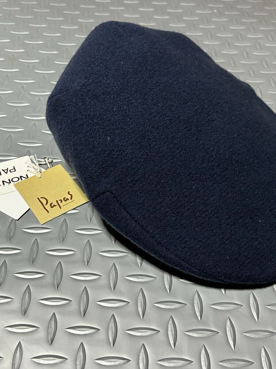 2021年秋冬モデル!☆ 新品未使用 Papas パパス ☆ 帽子 ハット ハンチング キャップ やや起毛 ウール帽 ネイビー 58〜61cm
