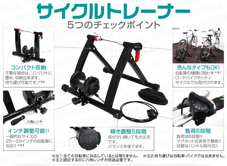 | 自宅がジムに早変わり! 25インチ~29インチのロードバイクやマウンテンバイクなど様々な自転車を使って屋内で簡単にトレーニングができます! 磁気抵抗(マグネット)のため簡単にお好みの負荷に調整することが可能です。 また音も三本ローラー台や遠心負荷よりも静かなことも特徴です。 前輪台やクイックリリースまでも付属しているので、すぐトレーニングできます。 【商品仕様】 サイズ(約):550mm×580mm×410mm 負荷方式:磁石式(マグネットユニット) 6段階負荷調整リモートダイヤル 対応タイヤ:25~29インチ 本体重量(約):7kg (自転車 2台 室内 フック スタンド式 ディスプレイ 簡単設置 省スペース収納) |