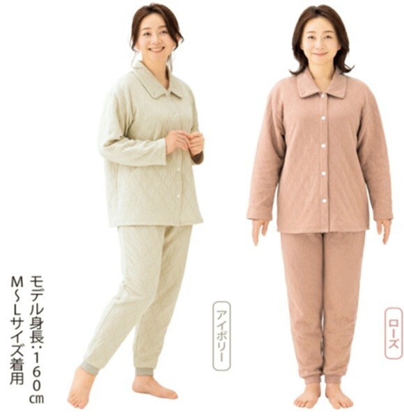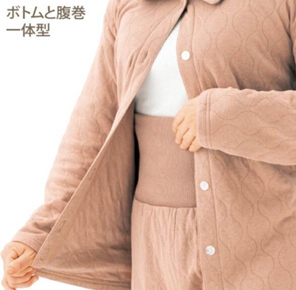 新品・定価8580円◆うるふわキルトのあったかパジャマ◆ローズ・サイズL-LL 腹巻きつきパジャマ・温活・ルームウェア