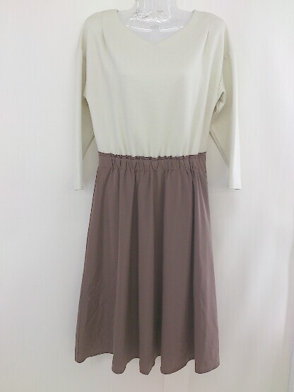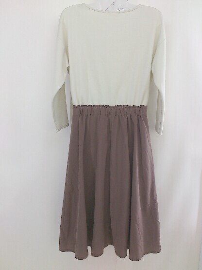 ◇ fredy emue フレディ エミュ 切替 長袖 膝下丈 ワンピース サイズ38 オフホワイト ブラウン レディース
