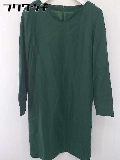 ◇ NATURAL BEAUTY BASIC シンプル きれいめ 長袖 膝丈 ワンピース サイズL ダークグリーン レディース