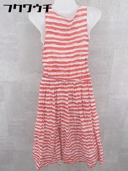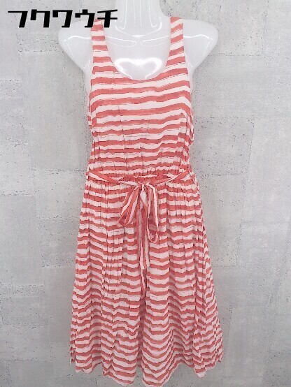 ◇ ◎ Lavand ラヴァンド ウエストリボン付 ボーダー ノースリーブ 膝下丈 ワンピース サイズS レッド レディース