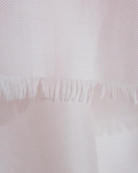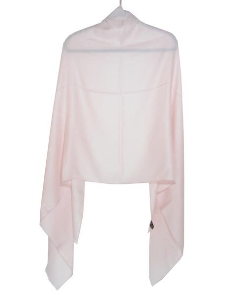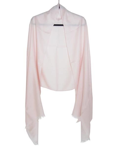 | 肌触りの良いカシミヤシルクのショール。薄手生地なのでたたむとコンパクトになり、お持ち歩きにもおすすめです。優しい薄いピンクでオシャレのポイントにいかがでしょうか。 |