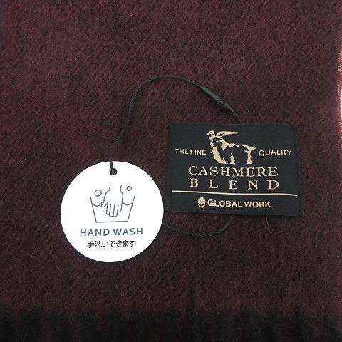 グローバルワーク GLOBAL WORK マフラー ライン フリンジ ウール カシミヤ混 赤紫 ボルドー /MN レディース
