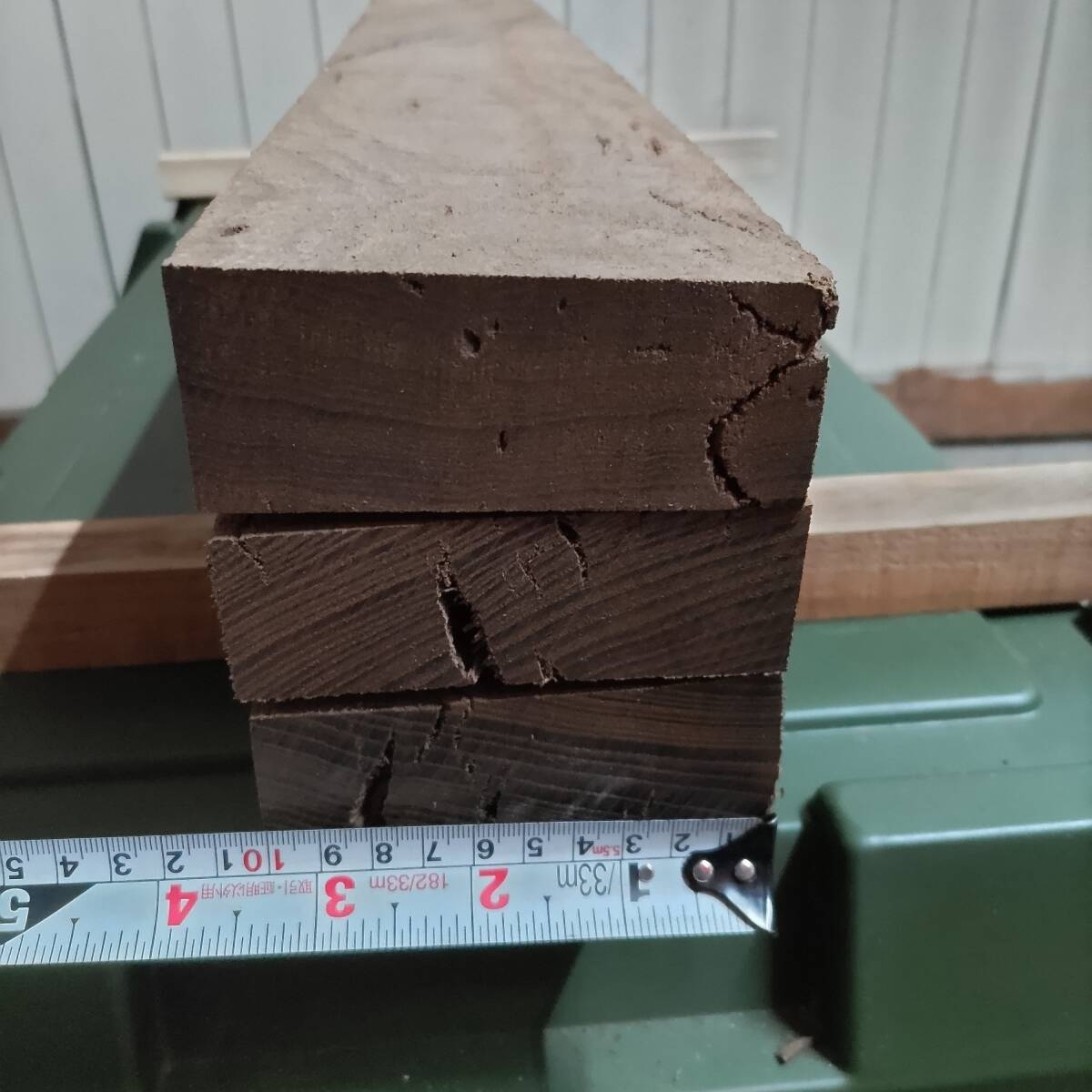 画像でもわかる通り、捻じれ、反り、深いひび割れなどあります。