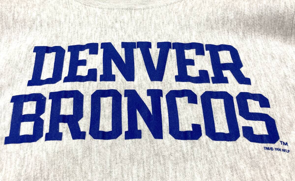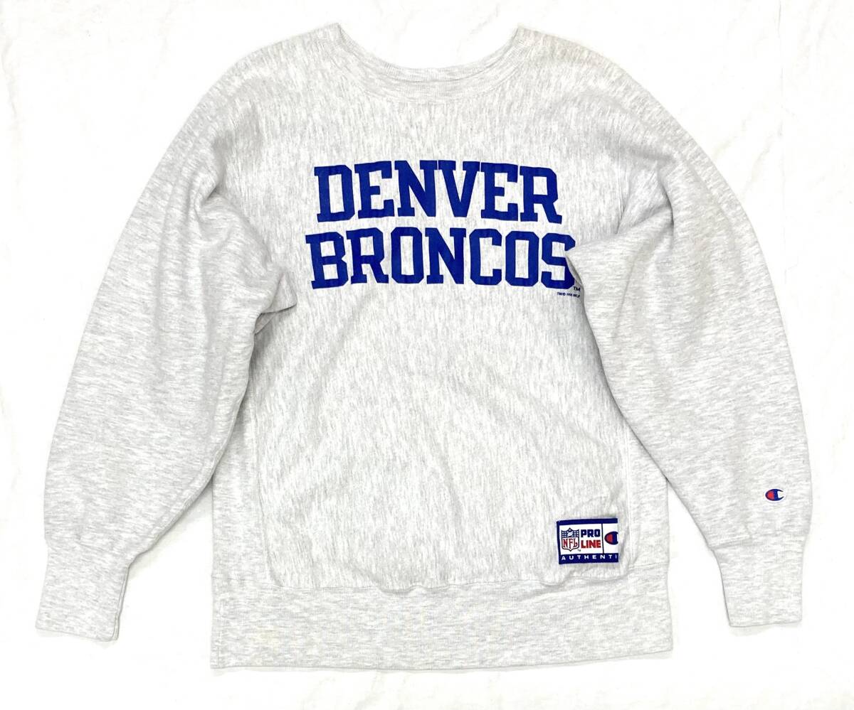 90s トリコタグ チャンピオン リバースウィーブ L 2段プリント グレー DENVER BRONCOS NFL アメリカンフットボール 霜降り ビンテージ