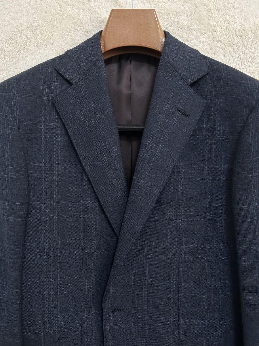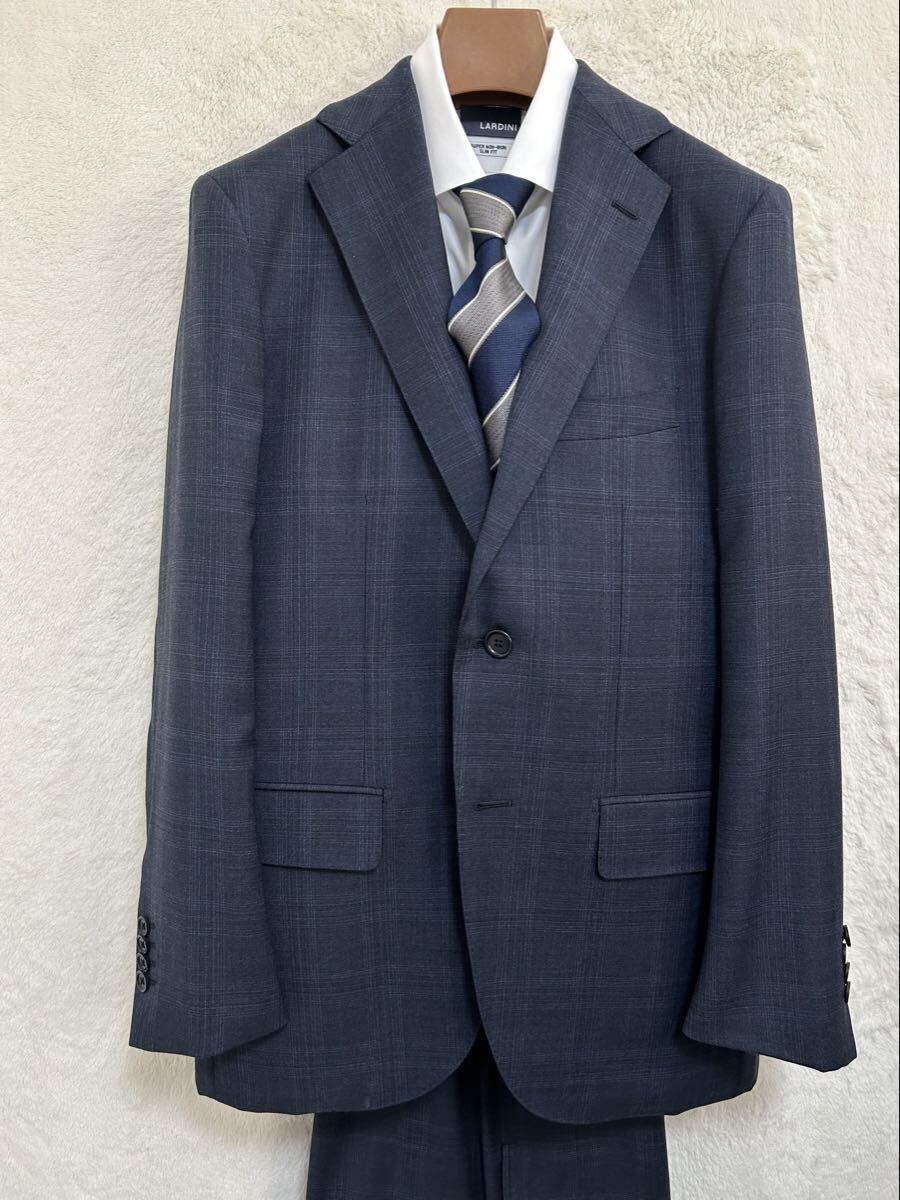 【新品未使用】秋冬物 イタリア最高級 ロロピアーナ LoroPiana 生地使用 メンズ スーツ A6 L ブルーグレー オーバーチェック柄