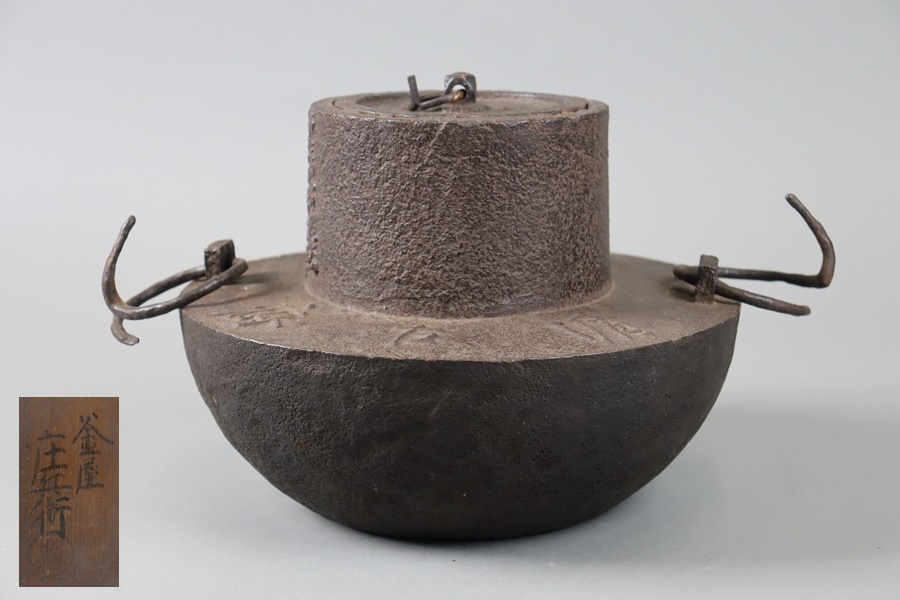 【時代金工 茶道具 庄兵衛 釜 時代箱付 高19,5cm 幅25cm】