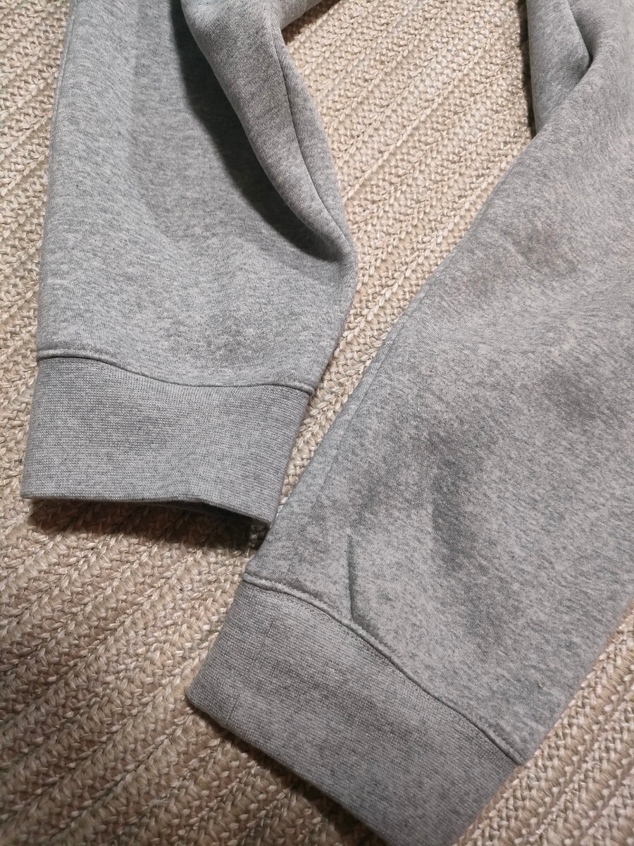 全体のシルエットはテーパードレグになり裾にかけて先細りになります。スニーカーレングス(長くなく、ジャストでスッキリとした丈)になり、スニーカーと相性が良いです。