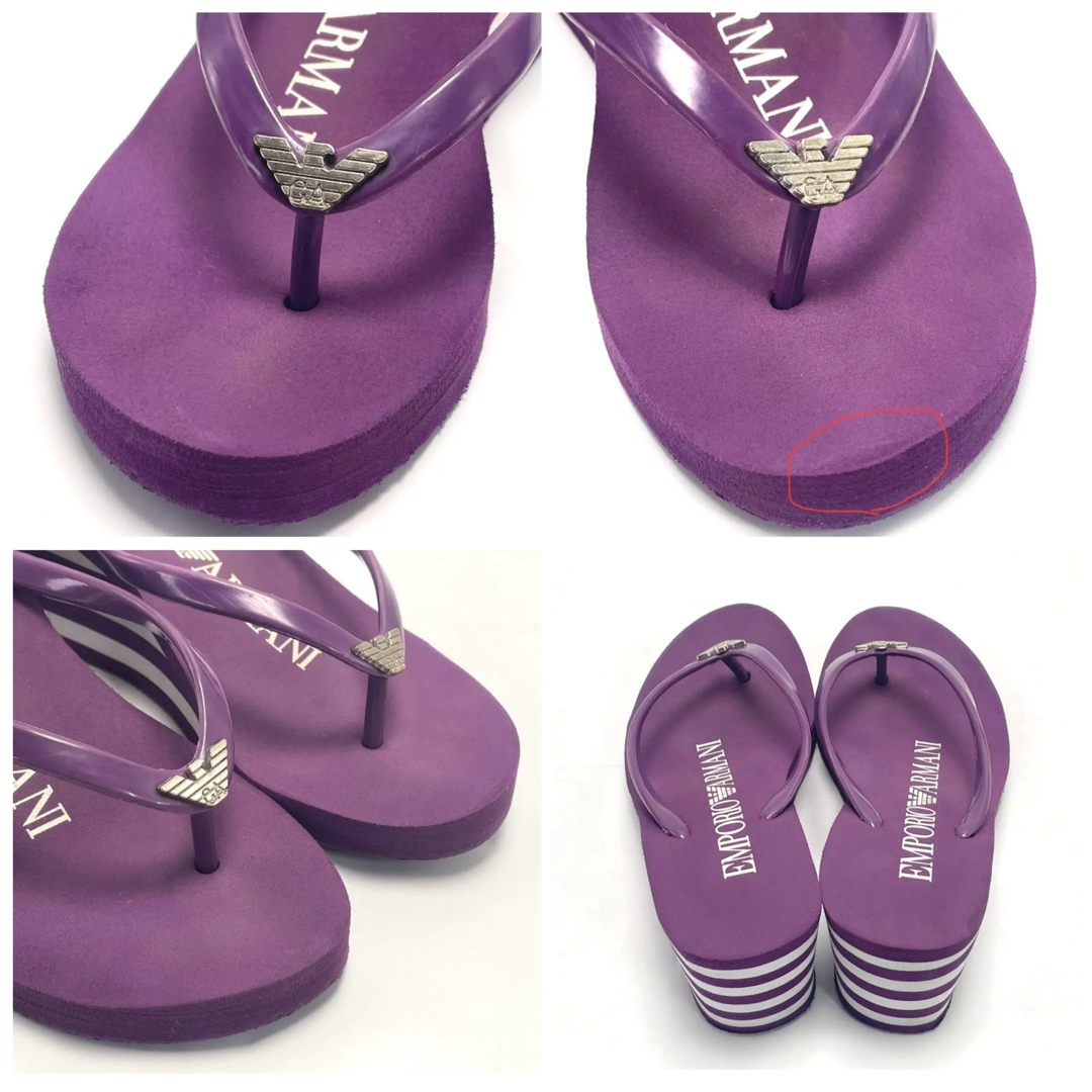また、左サンダルのつま先に色が濃くなっている部分(傷?汚れ??)があります。