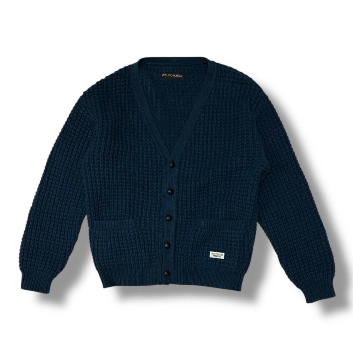 WACKO MARIA 24AW WAFFLE KNIT CARDIGAN ワッフルニットカーディガン セーター ワコマリア 24FW-WMK-KN02 ネイビー XXL (3204M)