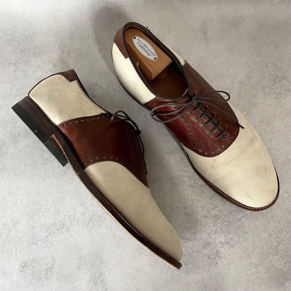 Aldenのクラシックなサドルシューズをベースに、ANATOMICAらしい美しい木型バランスと独自のカラーリングで仕上げた一足です。